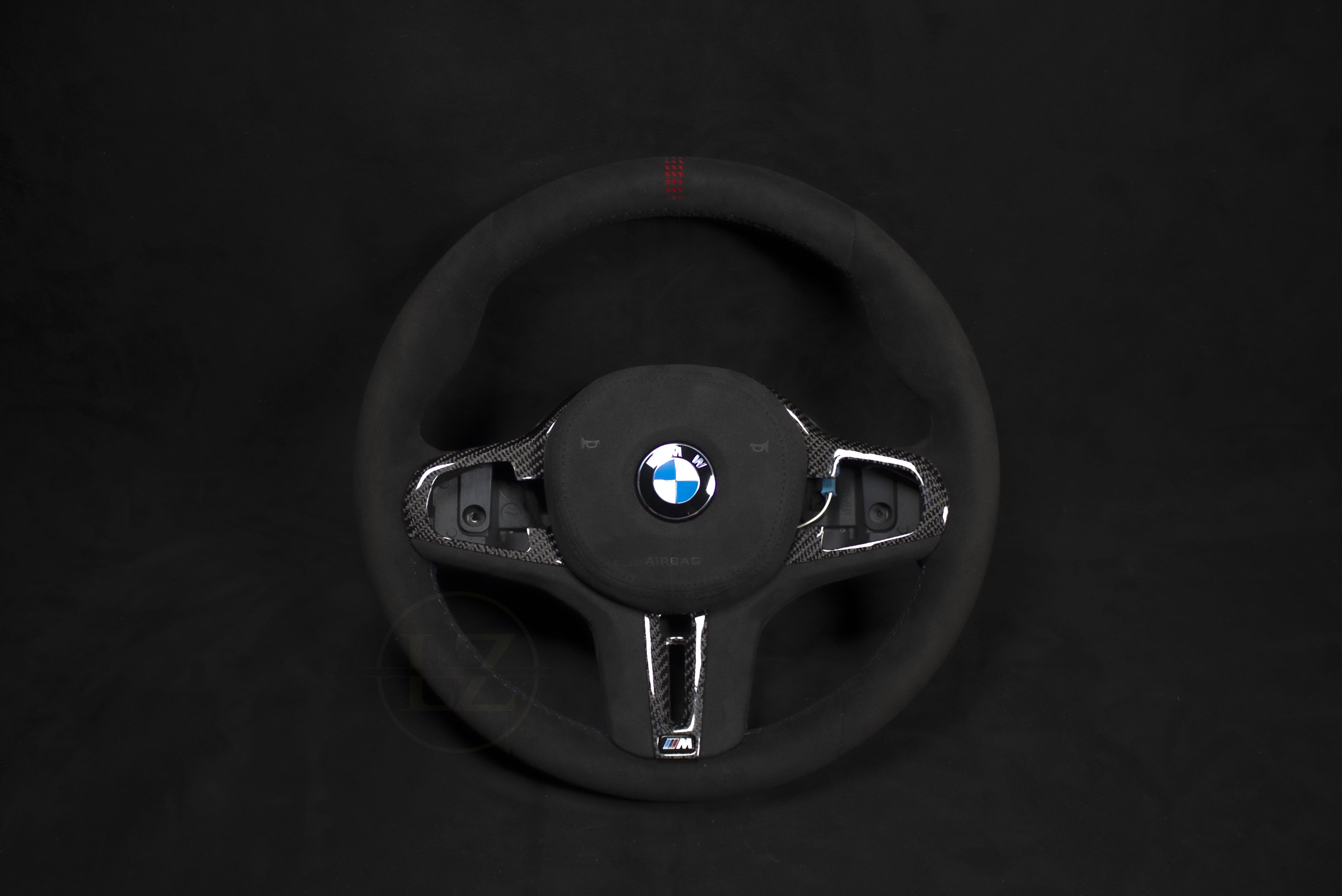Med ekte Alcantara fra Alcantara S.P.A og italiensk Nappa skinn, er kvaliteten uovertruffen. Den importerte karbonen fra Japan sikrer et luksuriøst preg, mens spesifikasjonene som tykkere grep og flat bunn gir optimal komfort.