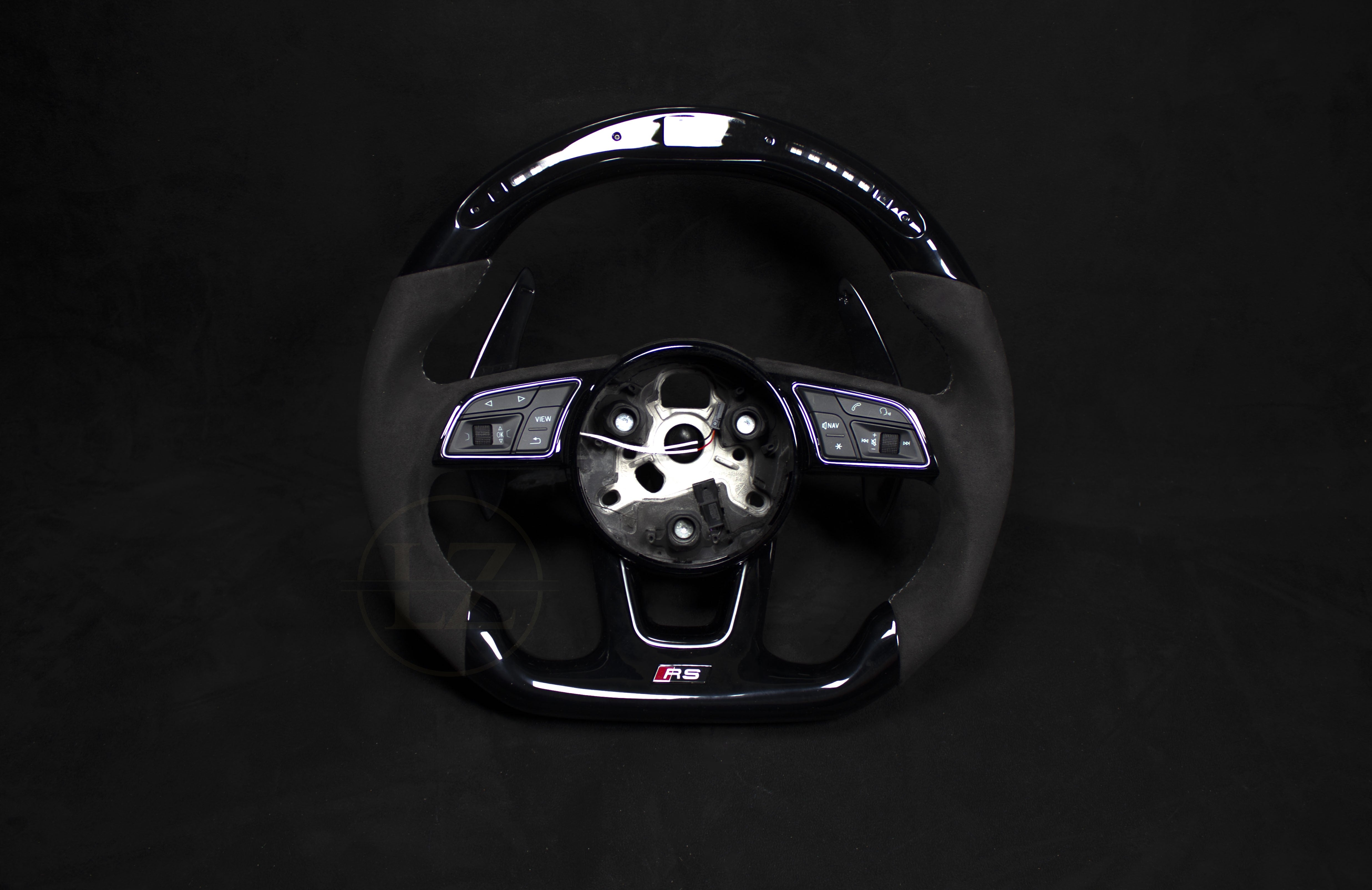 Oppdag det unike Audi B9.5 Pianosort Ratt med hvite detaljer, en perfekt kombinasjon av stil og funksjonalitet. Dette håndlagde rattet er skreddersydd for AUDI B9.5 og andre modeller med lignende rattdesign.