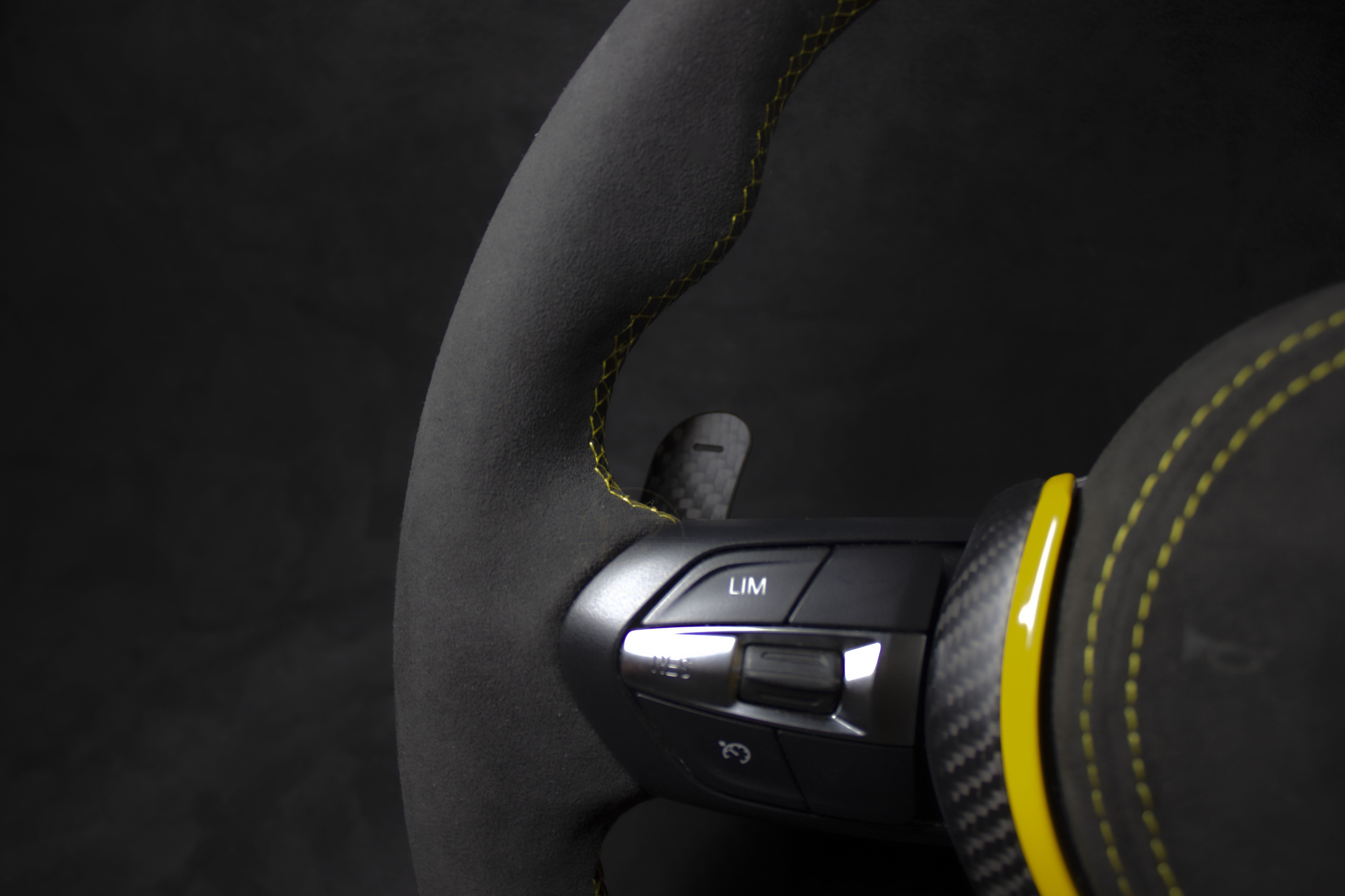 Oppdag det unike BMW F-Serie AlcantaraC Ratt med gule detaljer og magnetiske paddles V1. Dette håndlagde rattet er skreddersydd for alle BMW F2X, 3X og 8X med M-Sport ratt, og gir en perfekt kombinasjon av stil og funksjonalitet.