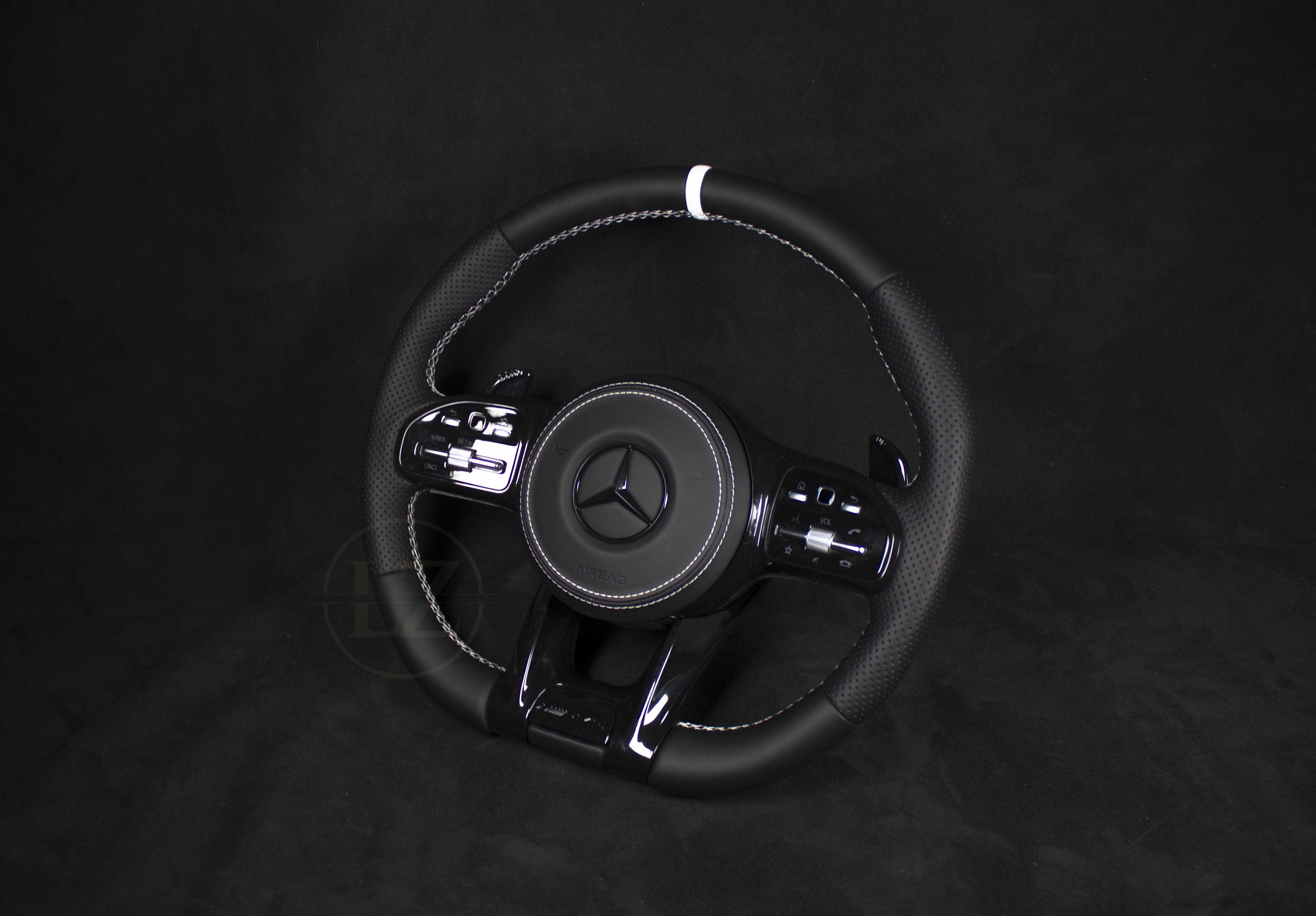 Oppdag det unike Mercedes-Benz C63 AMG Skinn Ratt med hvite detaljer, en perfekt kombinasjon av stil og funksjonalitet. Dette håndlagde rattet er skreddersydd for C63-modellen, og gir enestående kvalitet ned til minste detalj.