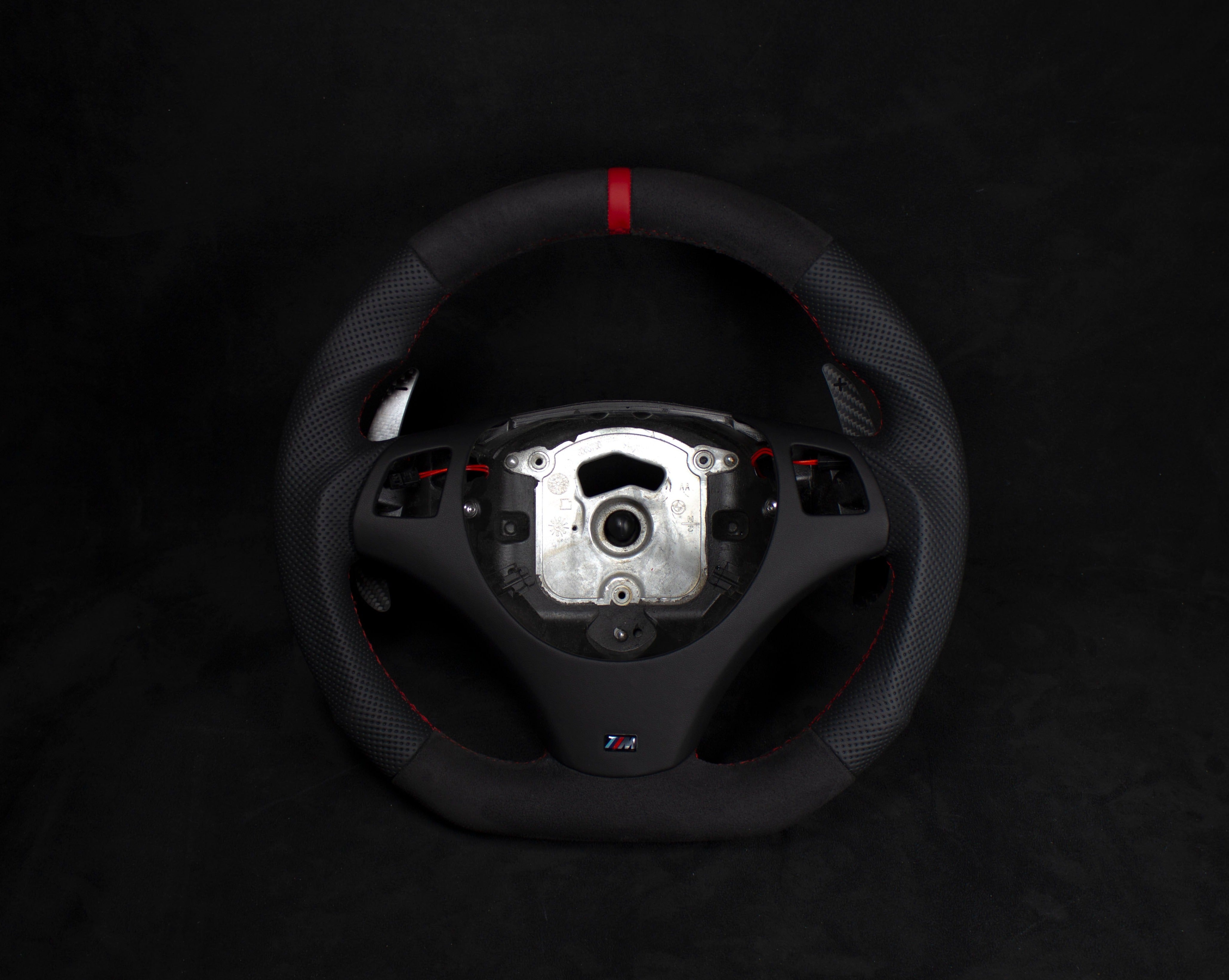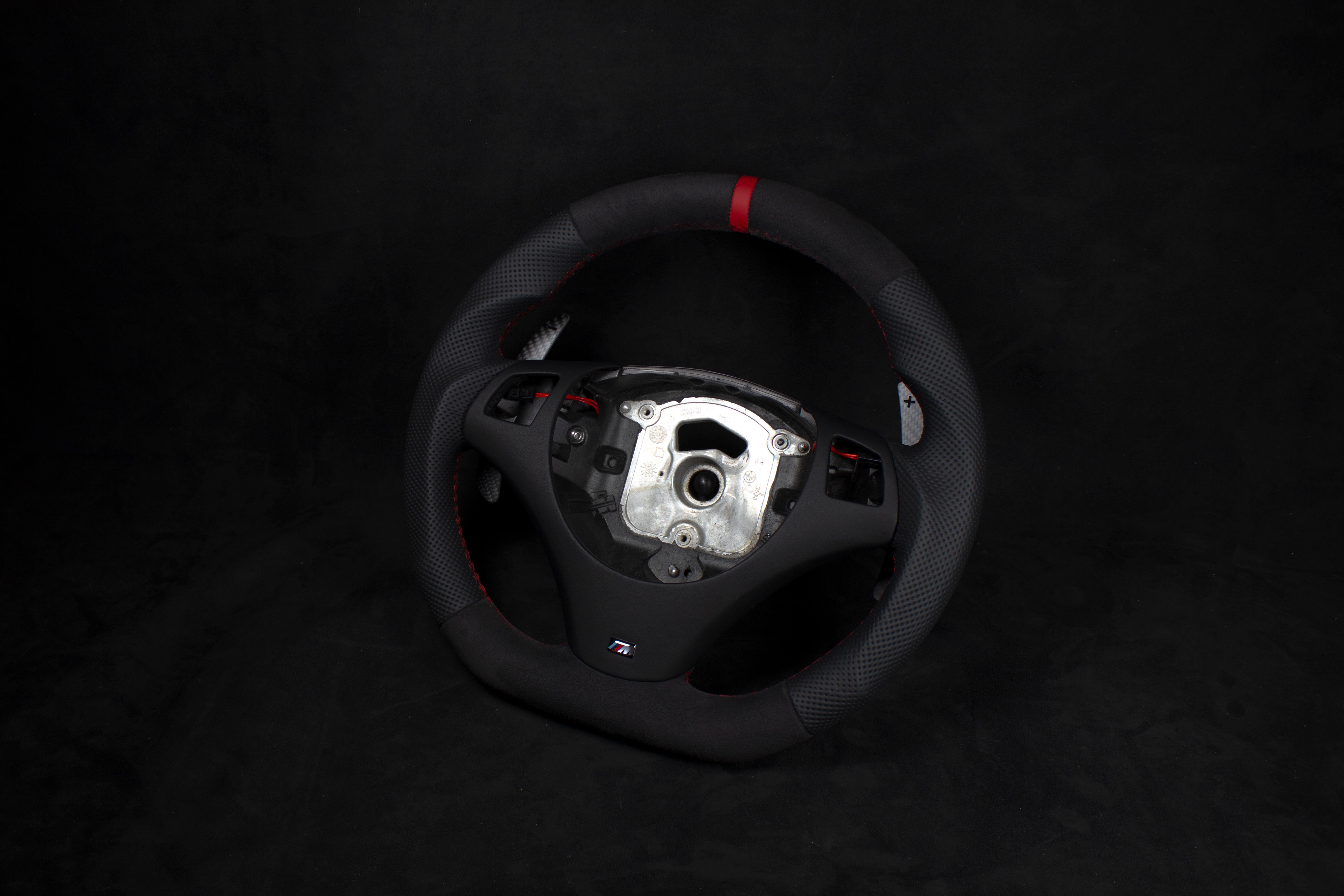 Oppdag det unike BMW E8X/E9X Alcantara/Skinn Rattet med røde detaljer og magnetiske paddles. Dette håndlagde rattet er skreddersydd for å passe perfekt til alle BMW E8X og E9X modeller med M-Sport ratt, og gir enestående kvalitet og stil.