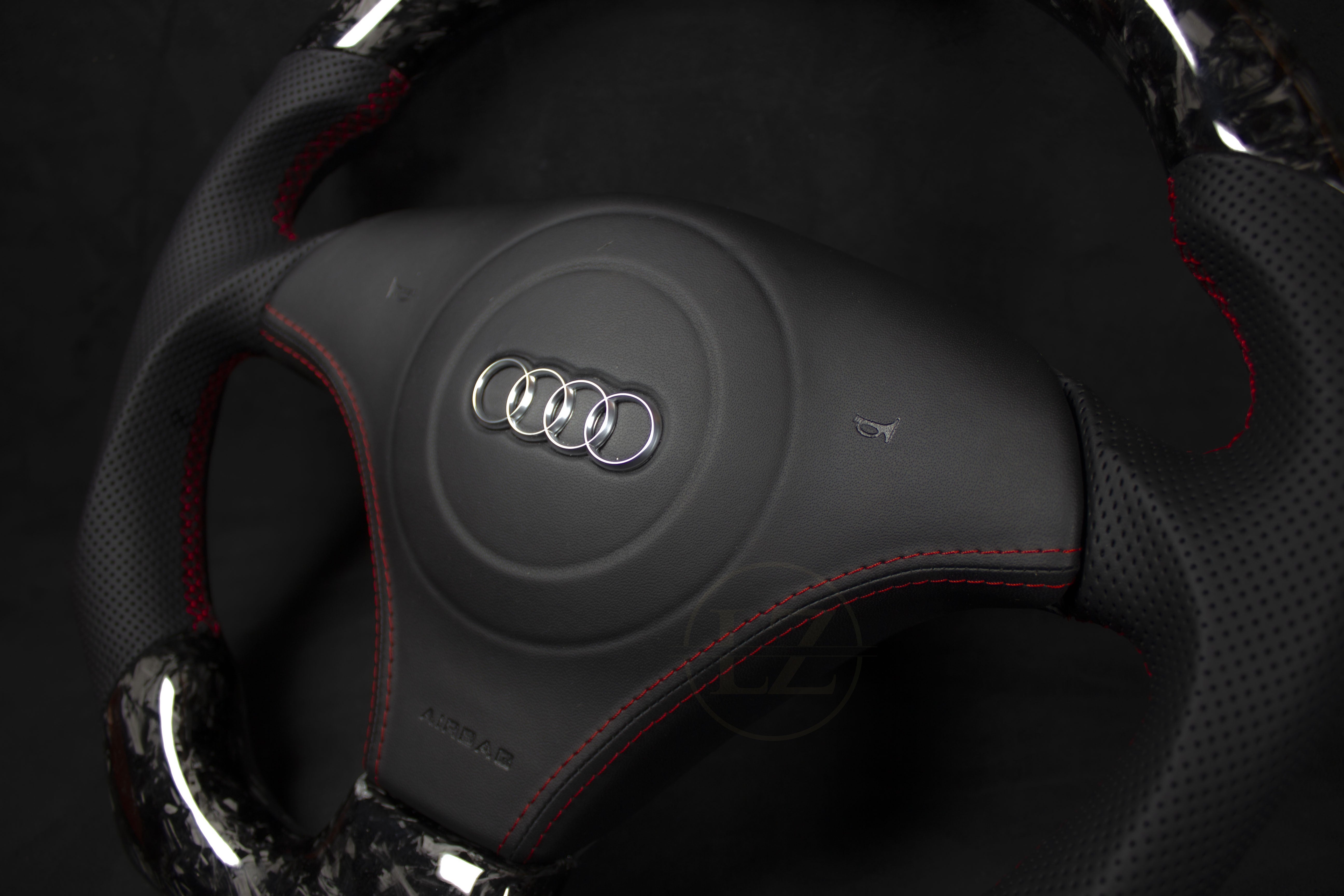- Audi B5 Lenkrad aus geschmiedetem Carbon – rote Details