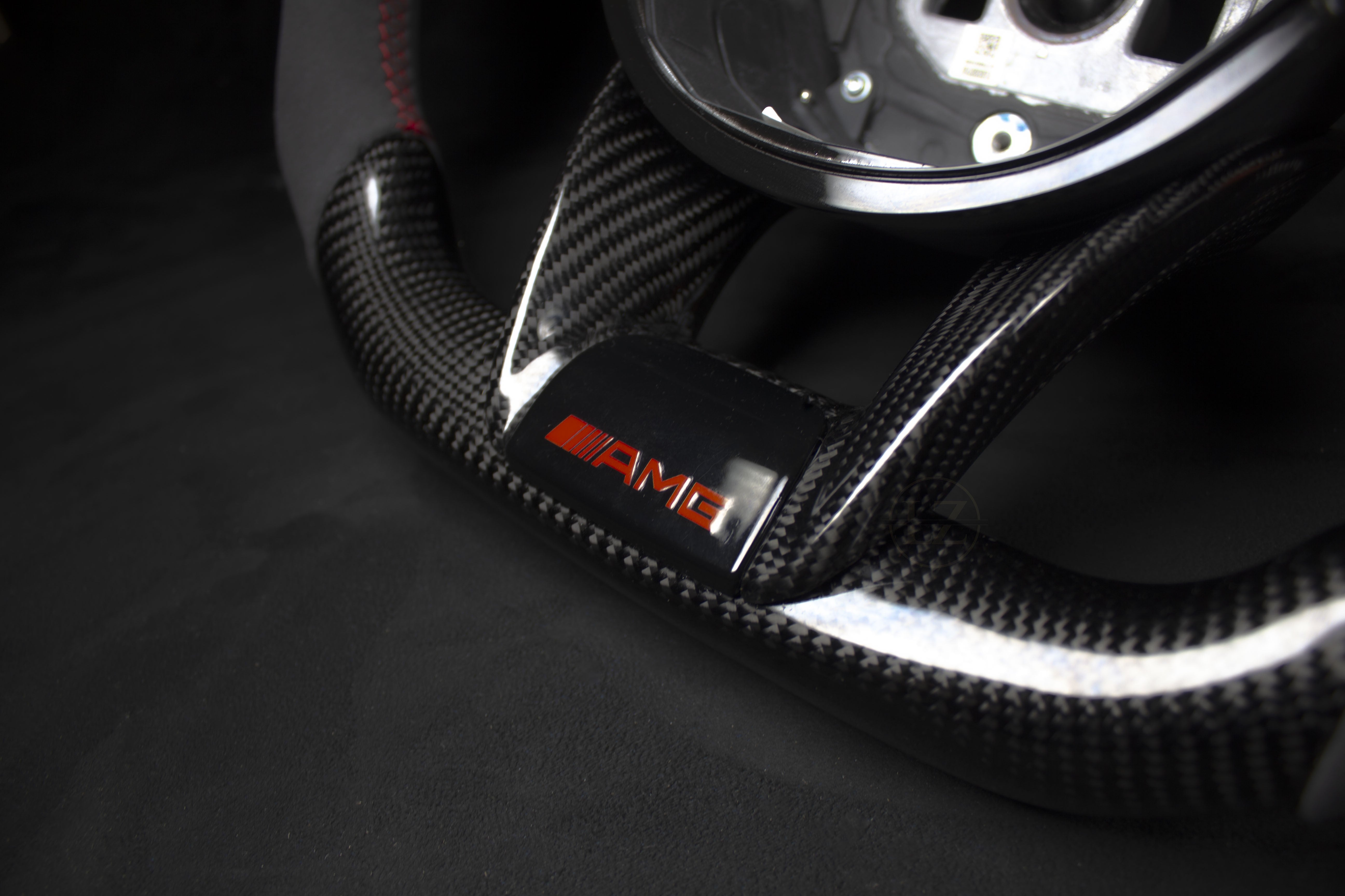 - Mercedes-Benz AMG LED-Lenkrad aus Alcantara/geschmiedetem Carbon – rote Akzente