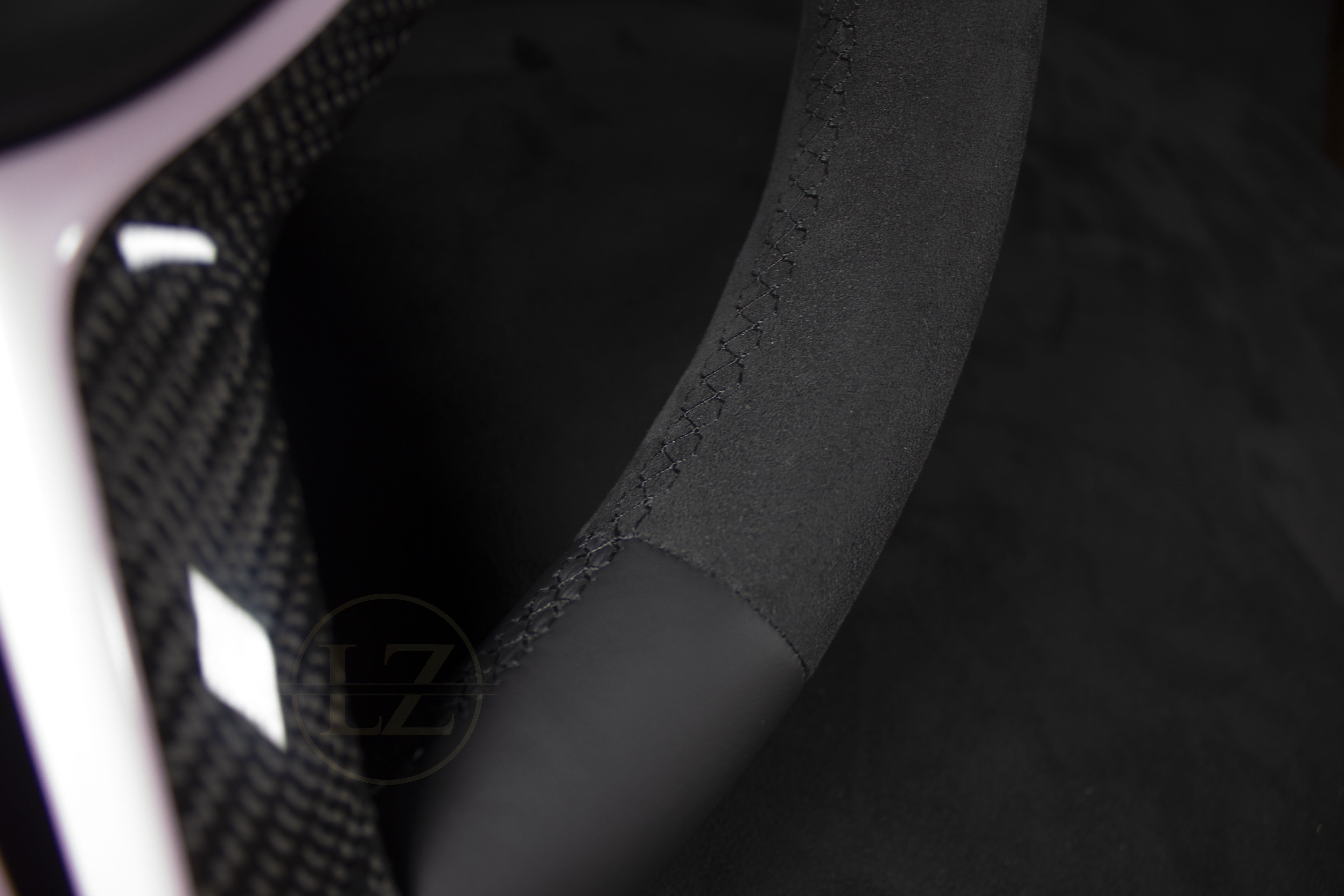 With an original steering base, we ensure a perfect fit without modifications, maintaining your safety. The steering wheel is made from genuine Alcantara from Alcantara S.P.A and Nappa leather from Italy, combined with carbon imported from Japan for maximum quality.