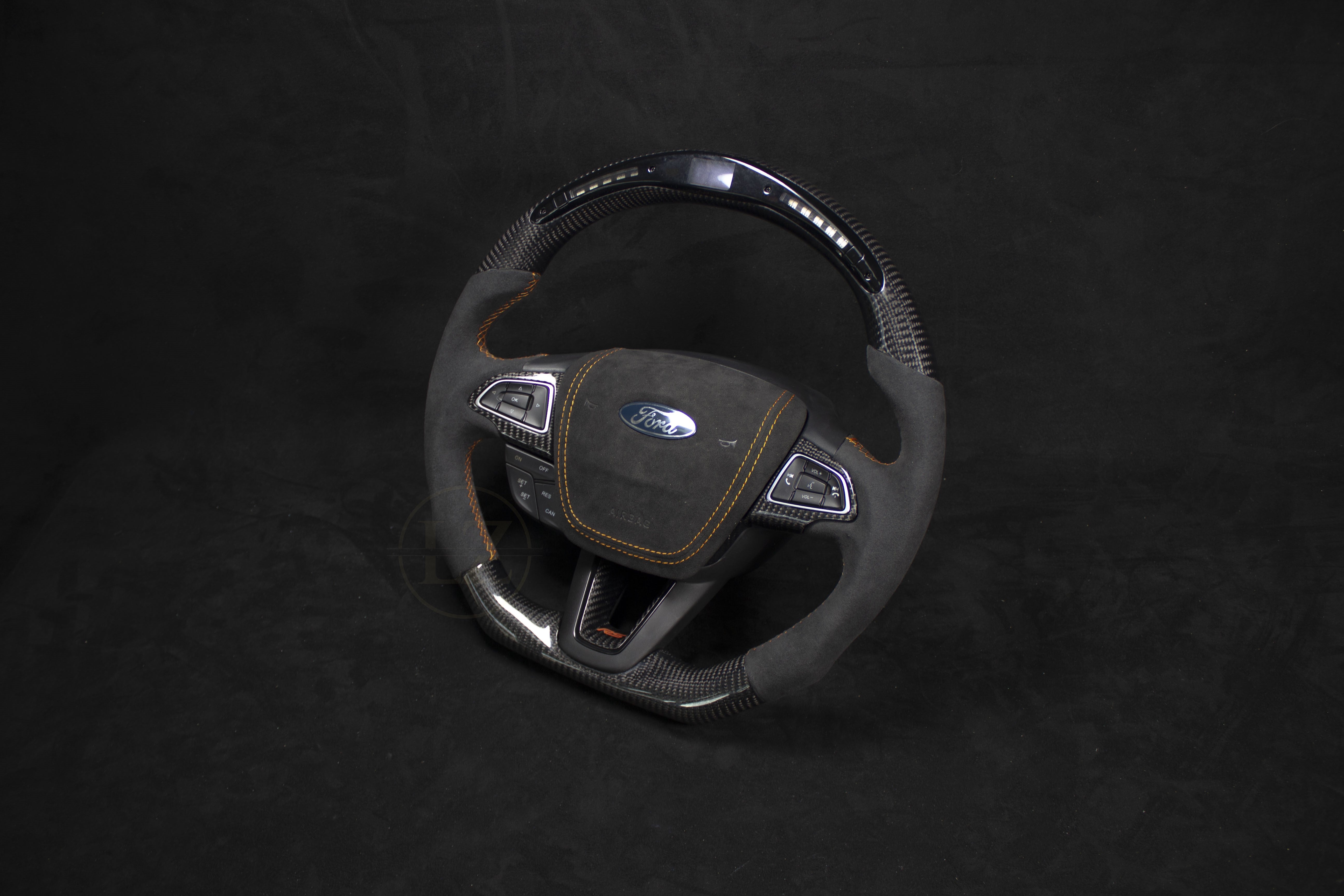 Discover the unique Ford Focus ST/RS MK3 Alcantara/Carbon + LED Steering Wheel Limited Edition, a handcrafted steering wheel that combines style and functionality. This steering wheel is custom-made for RS/ST FOCUS MK3, and every detail is perfected to provide exceptional quality.