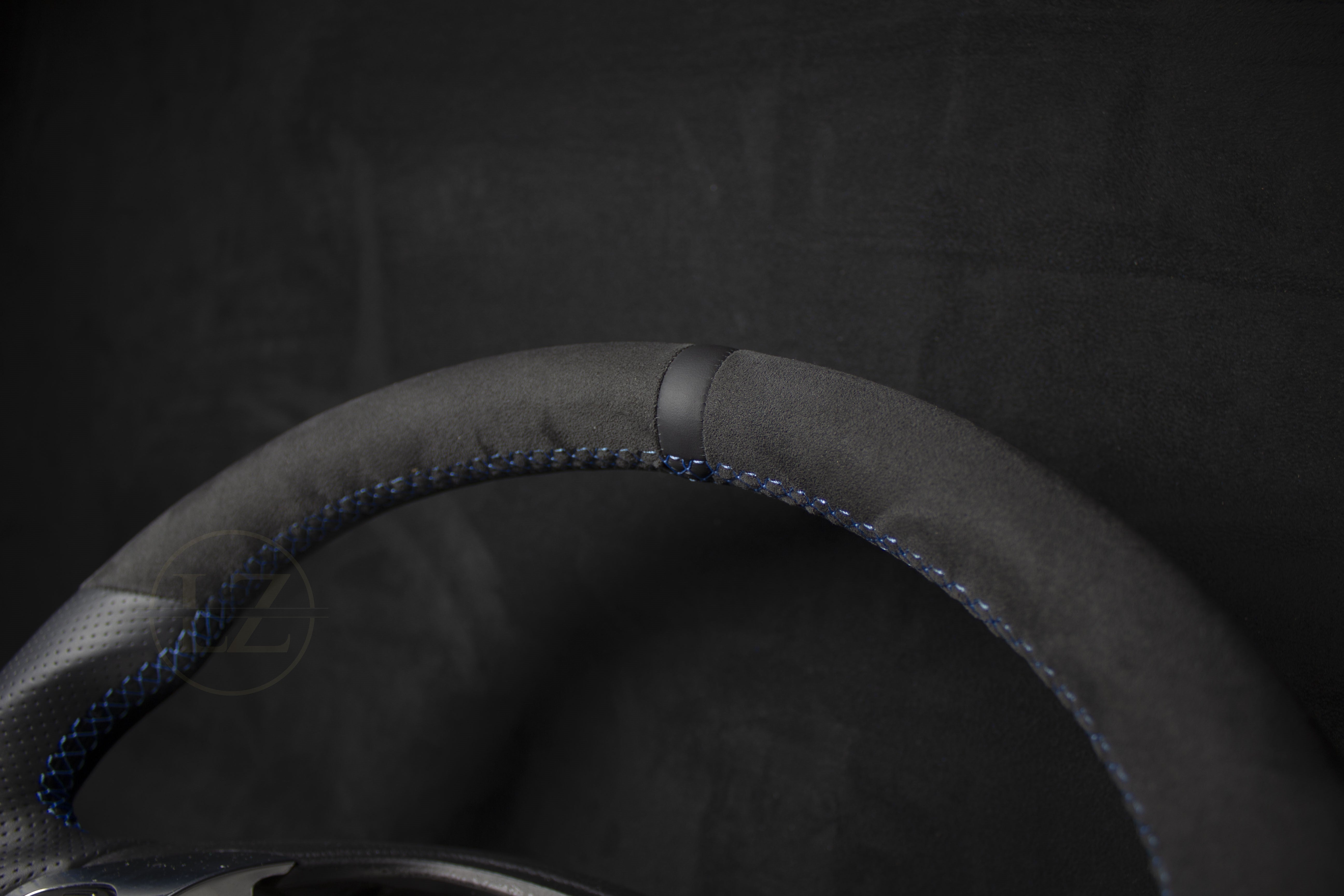 The wheel is made from genuine Alcantara from Alcantara S.P.A and Italian Nappa leather, with carbon imported from Japan for high quality. With specifications such as perforated leather sides and blue stitching, this steering wheel stands out from the crowd.