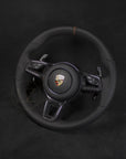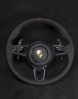 Porsche 911 Blackout Skin Steering Wheel Brown Details is a unique handmade steering wheel that combines style and functionality. This steering wheel fits perfectly with the 911 and several other models, providing a customized experience for car enthusiasts.