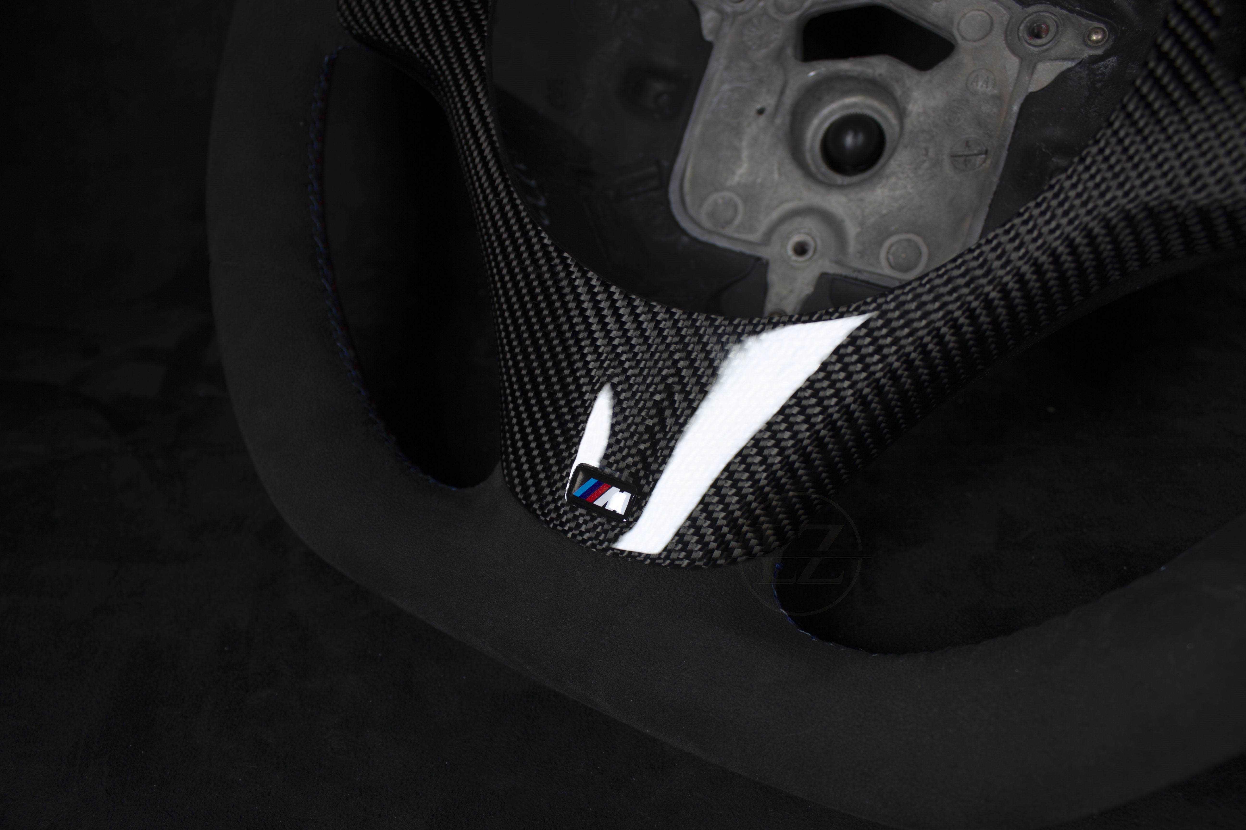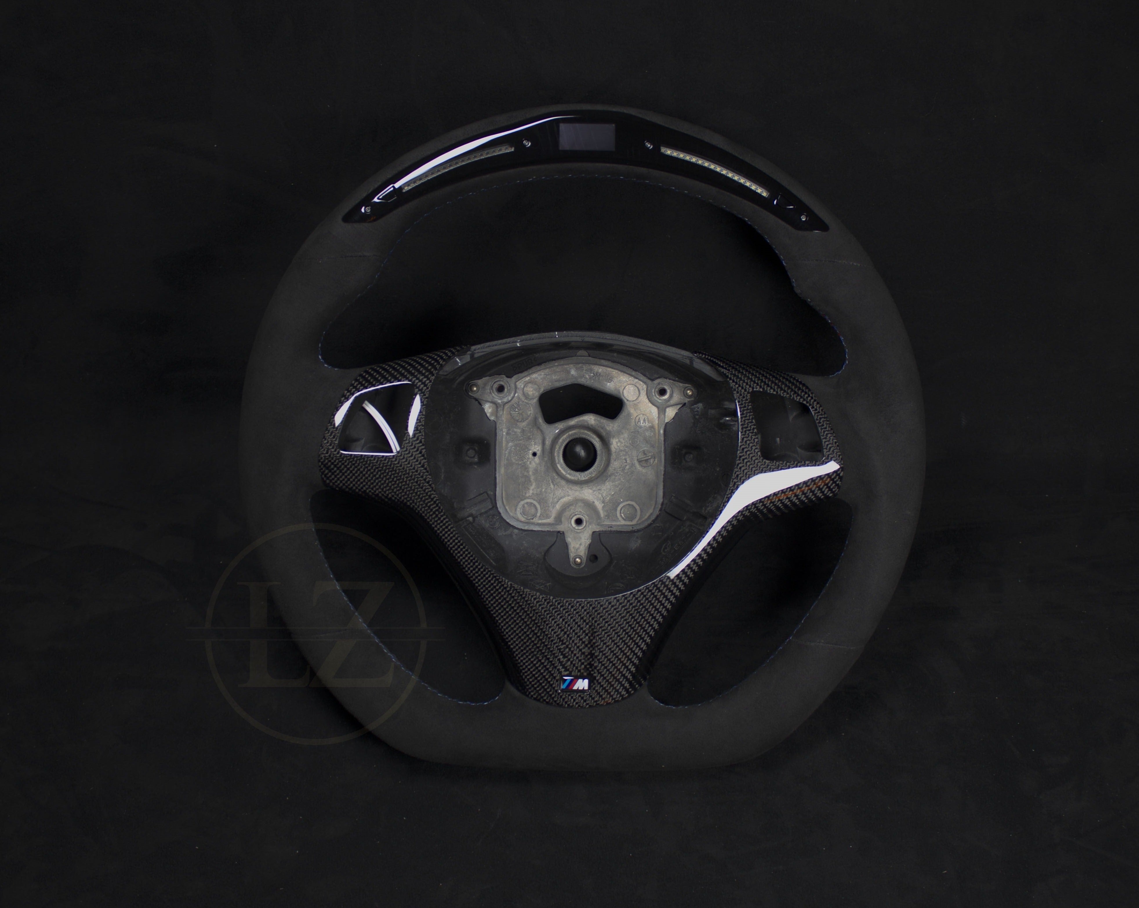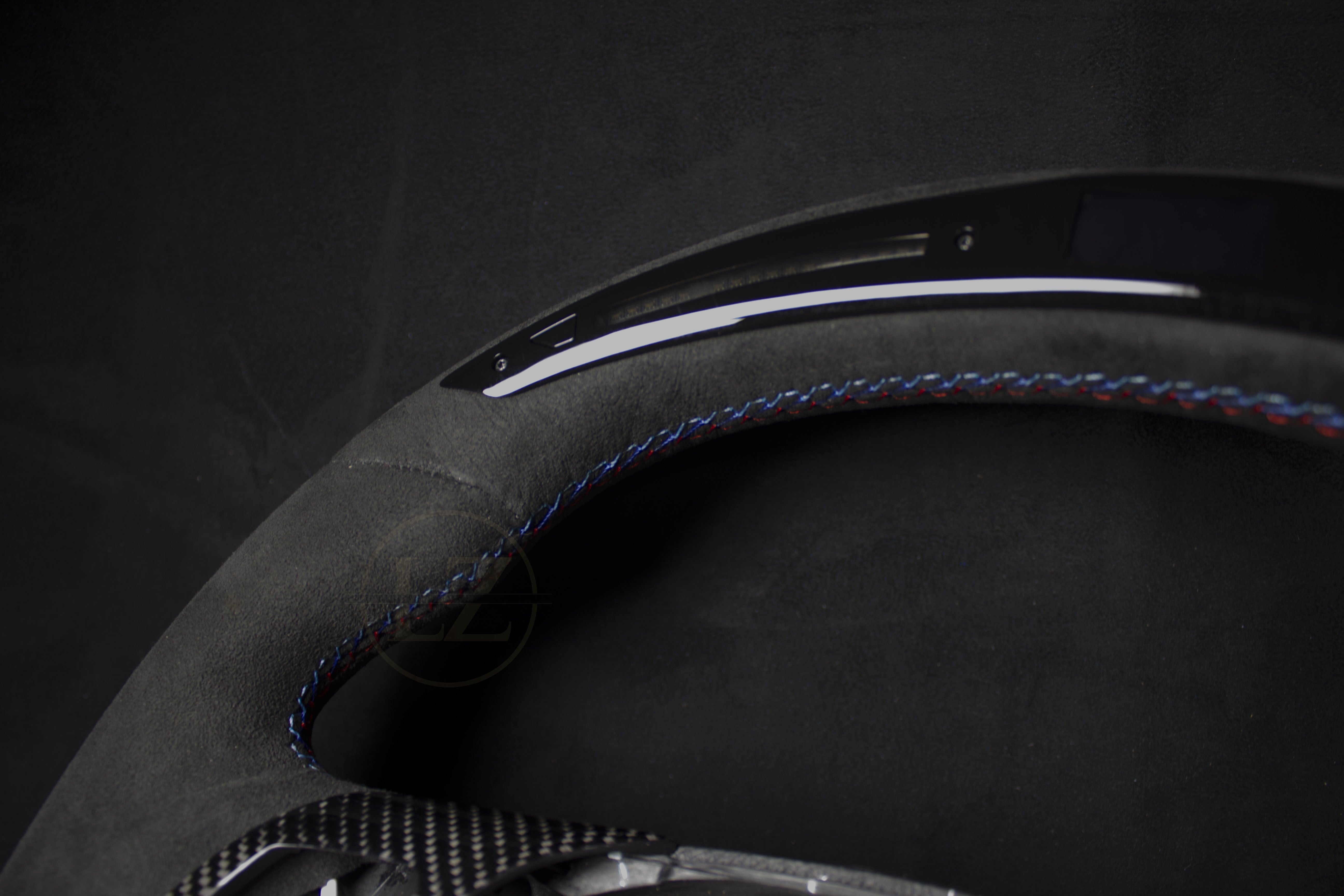Discover the unique BMW E8X/E9X Alcantara LED Steering Wheel with M-Stitches Carbon Steering Wheel Cover, designed to elevate your driving experience. This handcrafted steering wheel fits perfectly on all BMW E8X and E9X models with M-Sport steering wheels, combining style with functionality.