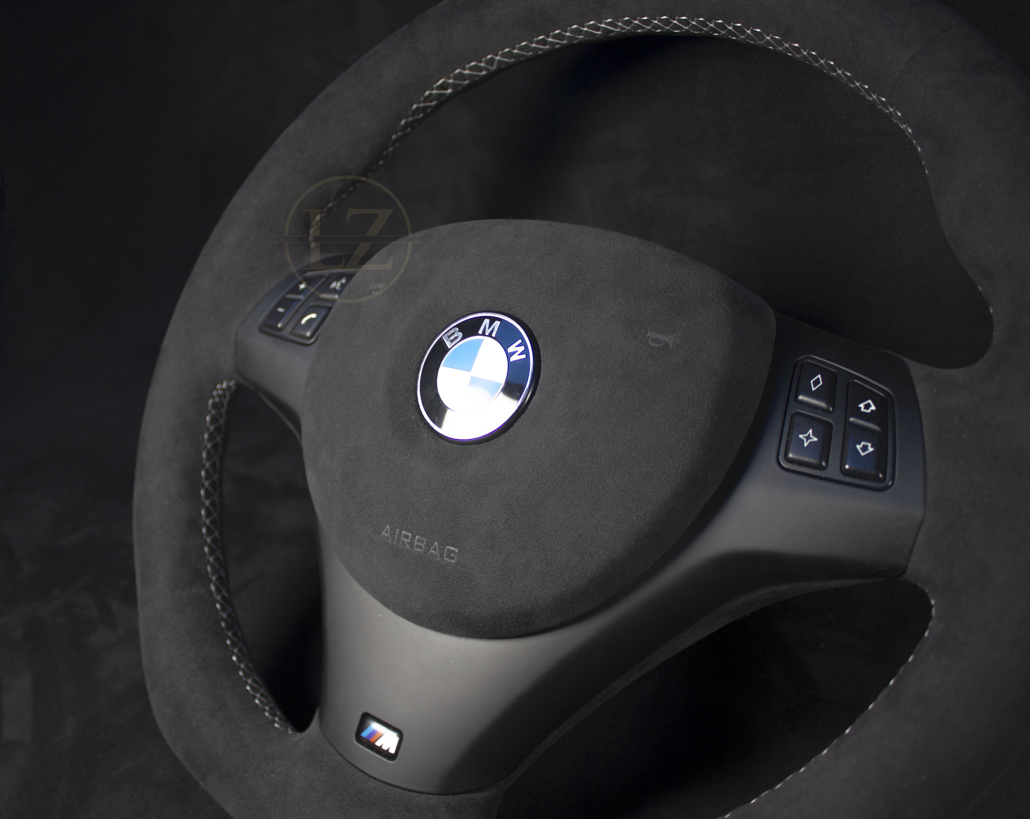 Discover the unique BMW E8X/E9X M-Performance Alcantara Steering Wheel with white stitching, a perfect combination of style and functionality. This handcrafted steering wheel is tailored for BMW E8X and E9X with M-Sport steering, providing an exceptional driving experience.