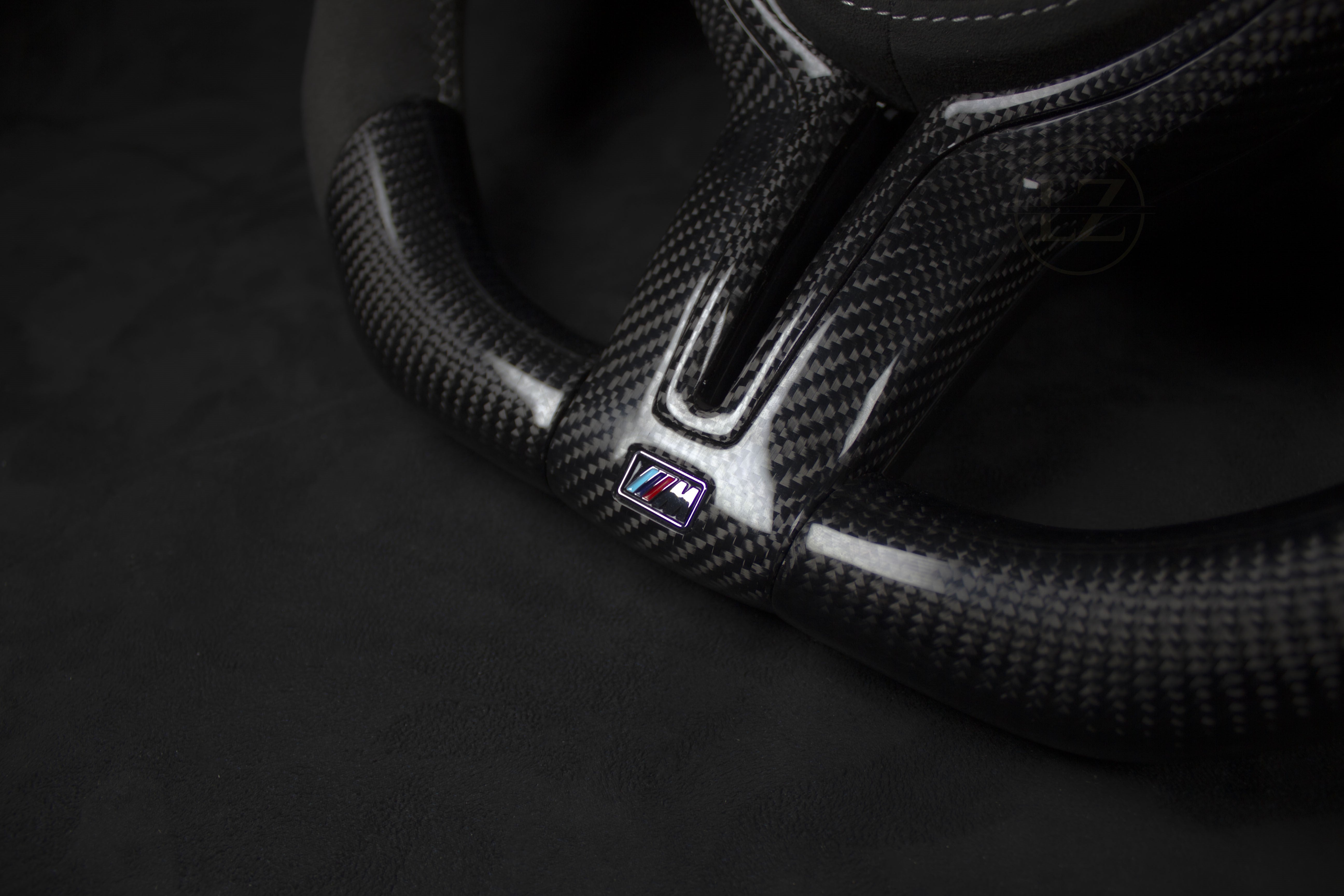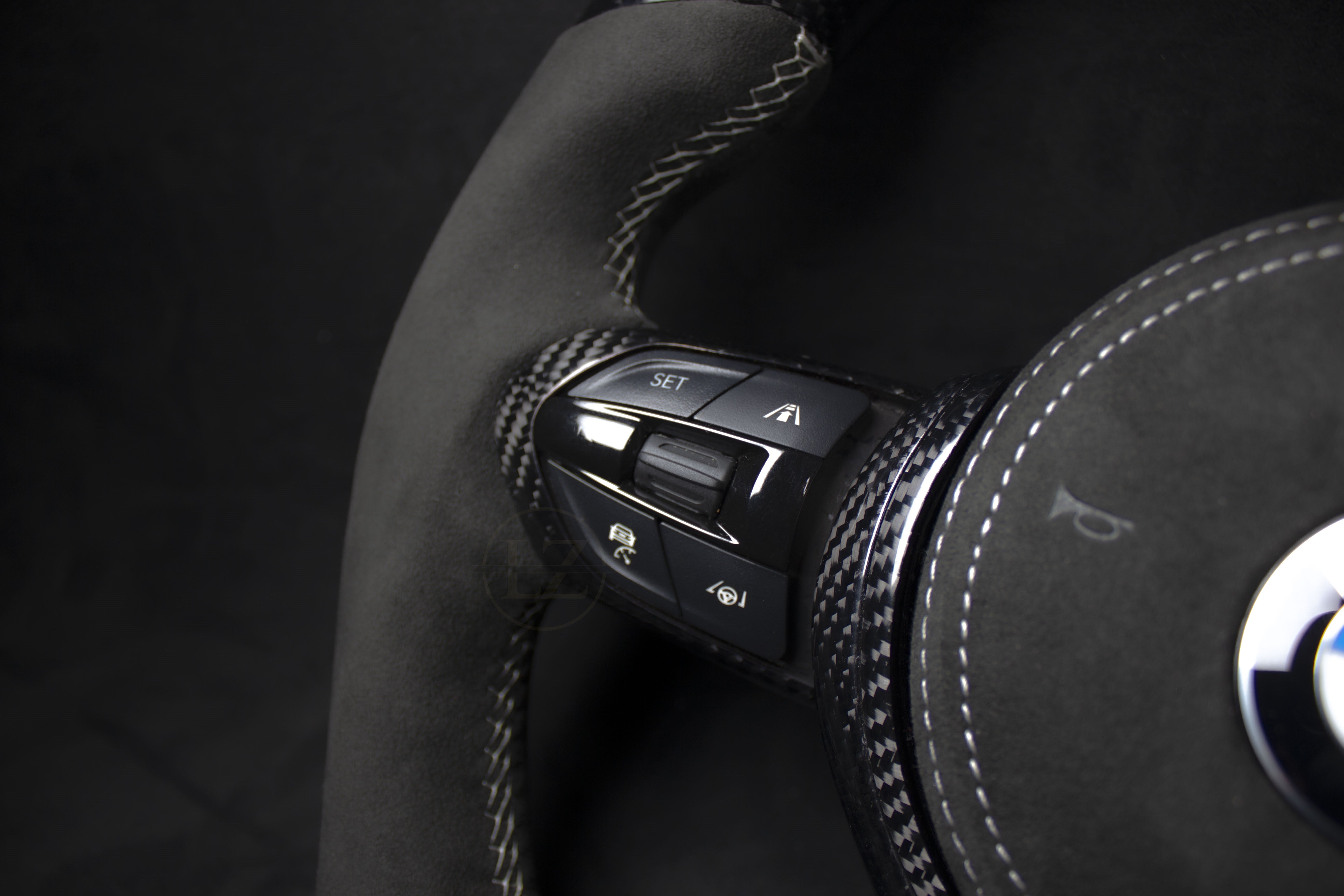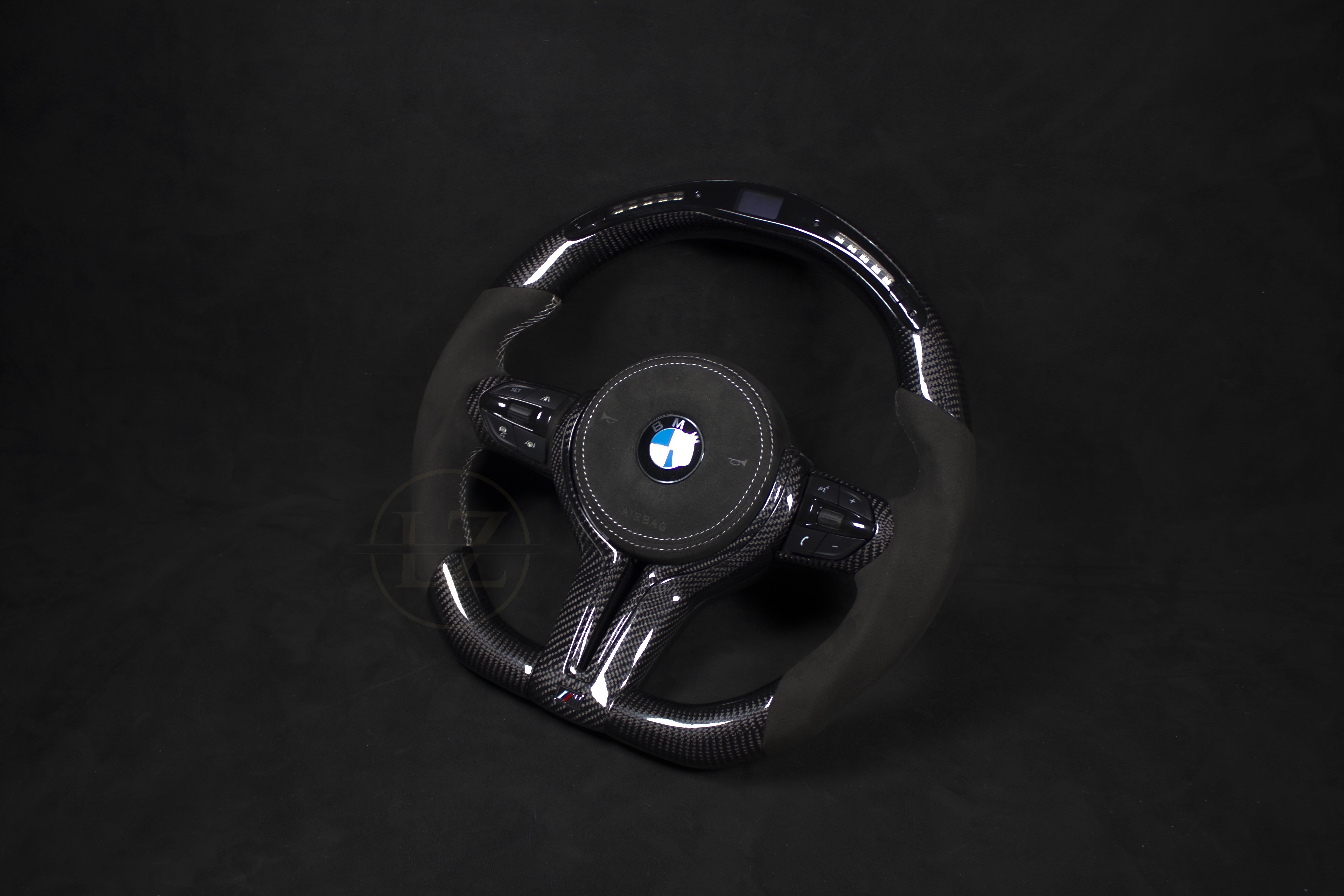 Discover the unique BMW F-Series Alcantara/Carbon Steering Wheel with LED White Details, designed to elevate your driving experience. This handcrafted steering wheel fits perfectly on all BMW F2X, 3X, and 8X models with M-Sport steering wheels, providing exceptional quality and style.