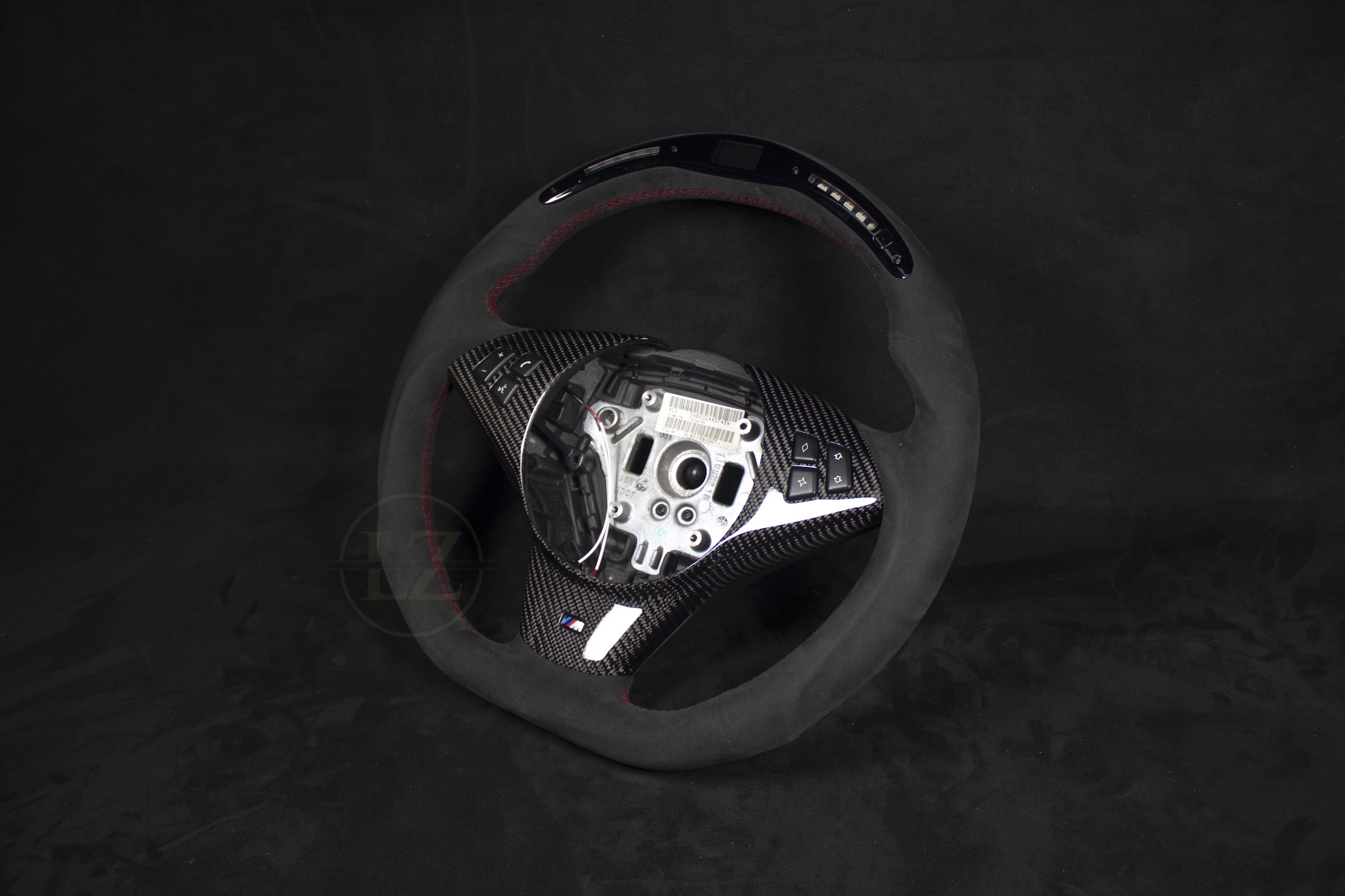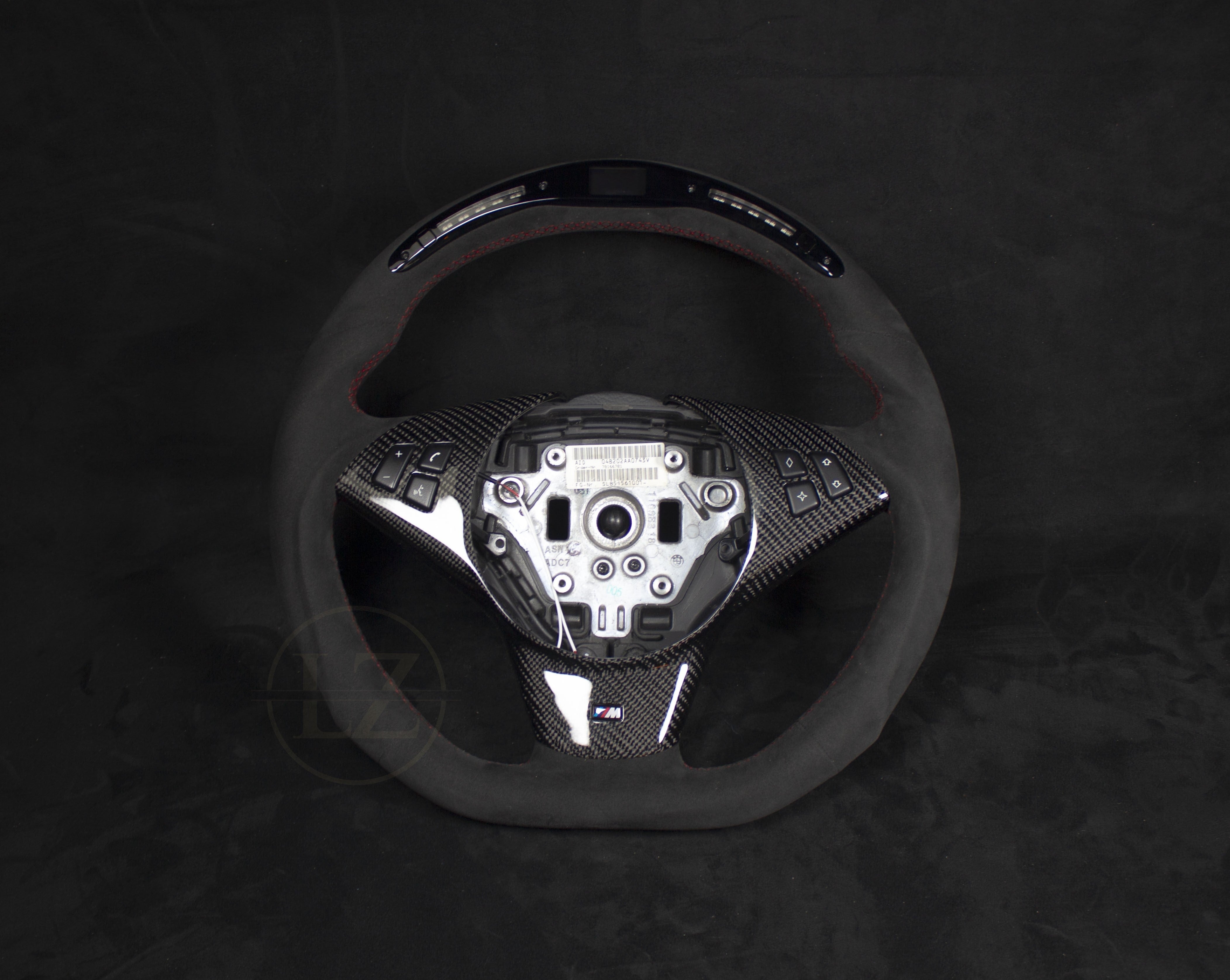 Discover the unique BMW E60, E61 Alcantara LED Steering Wheel RED Details, a handcrafted gem that gives your car an exclusive touch. This steering wheel is tailored for all BMW E6X models, and we ensure a perfect fit without modifications.