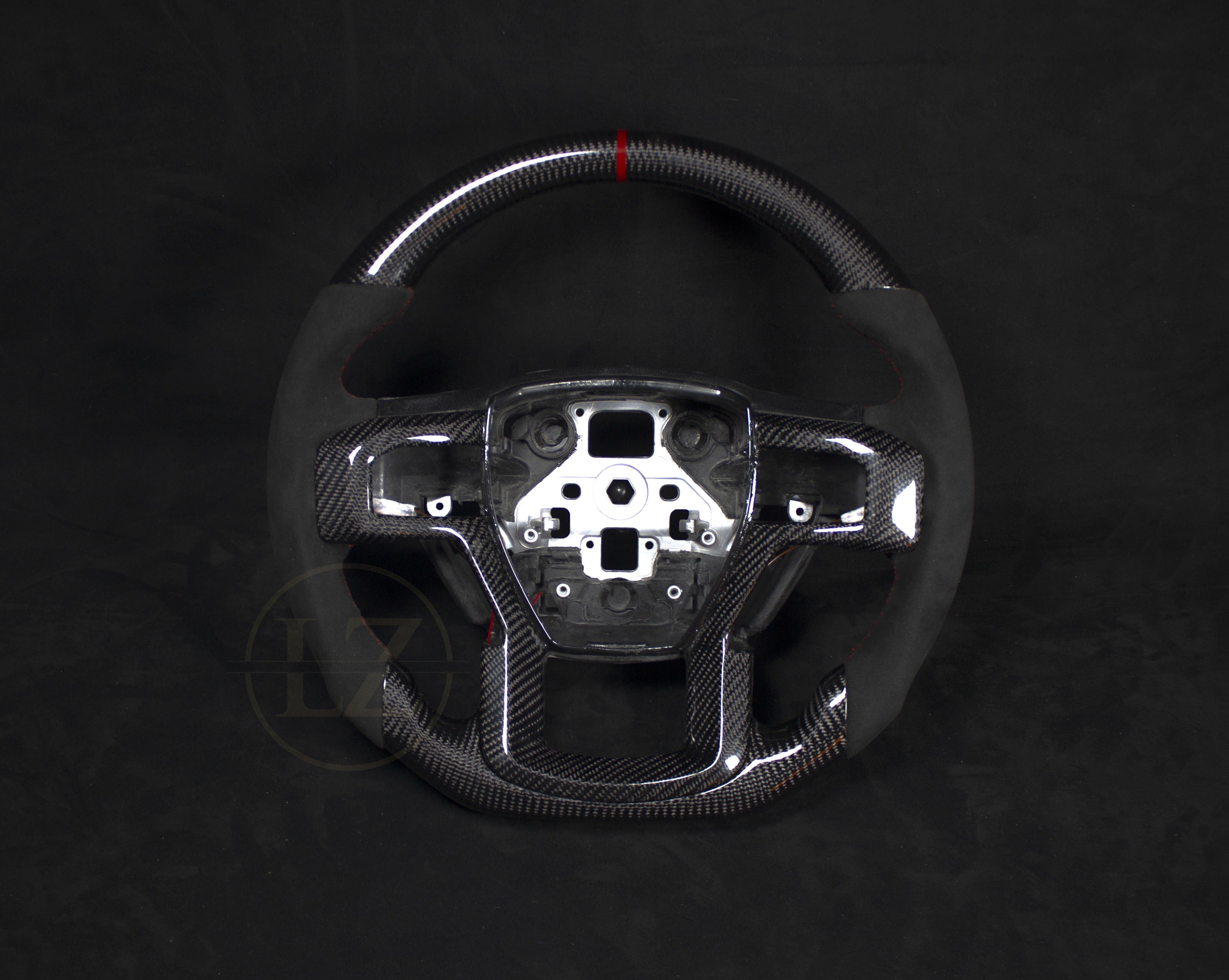 Descubra el exclusivo volante Ford F-150 de carbono y Alcántara con detalles en rojo: una combinación perfecta de estilo y funcionalidad. Este volante artesanal se fabrica con una base original, lo que garantiza un ajuste perfecto sin modificaciones.