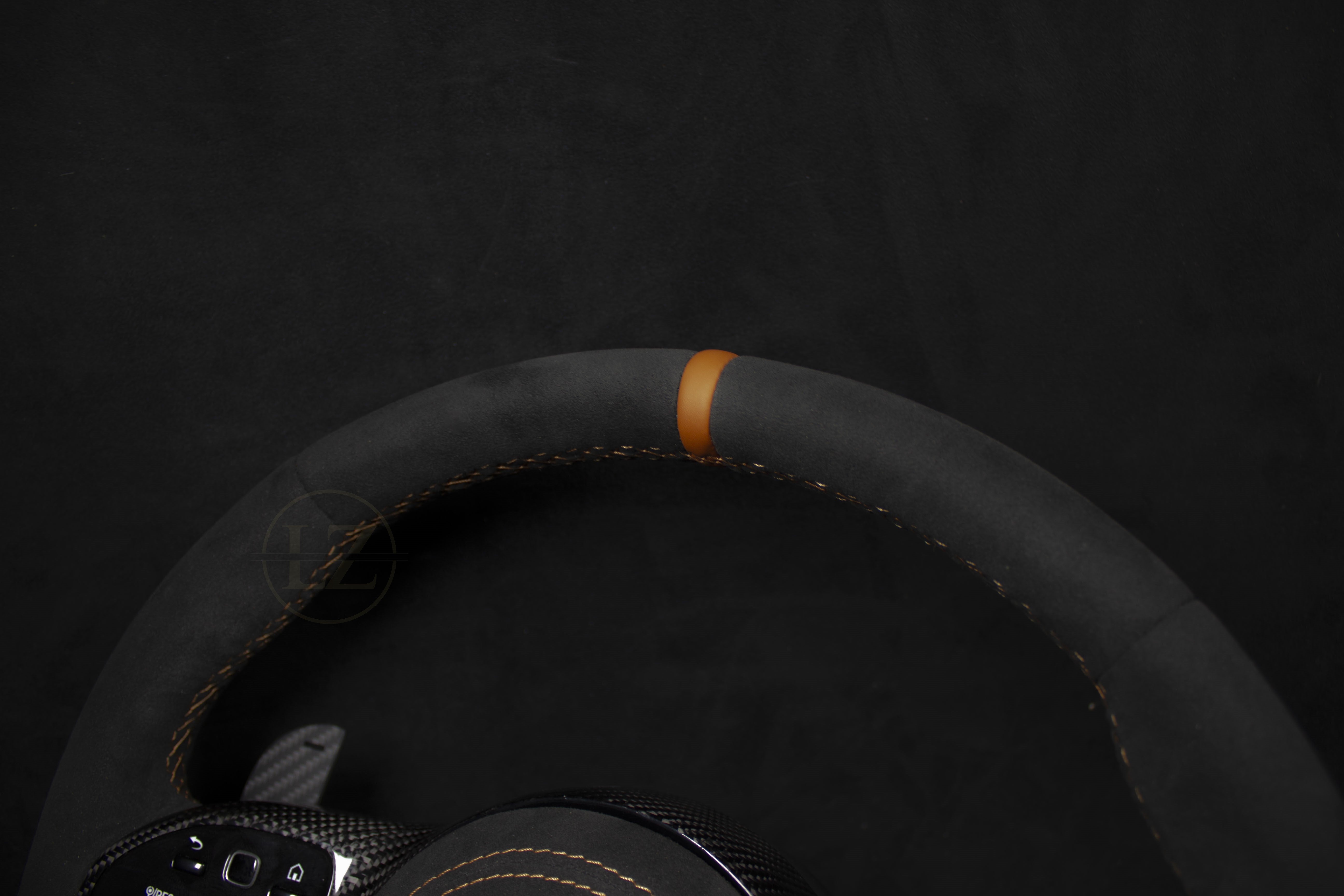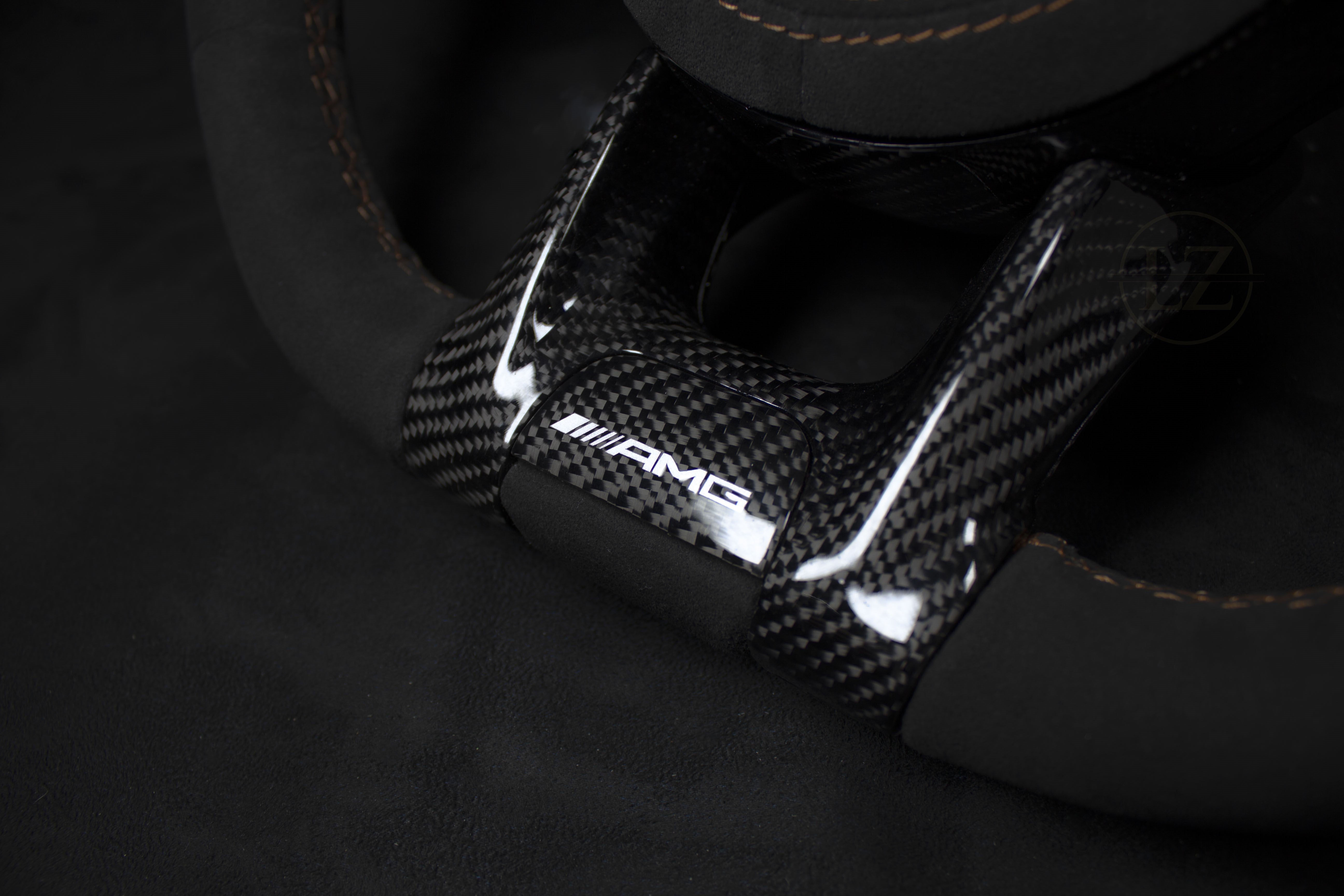 Hermoso volante personalizado que se adapta al C63 con el mismo acabado de volante.