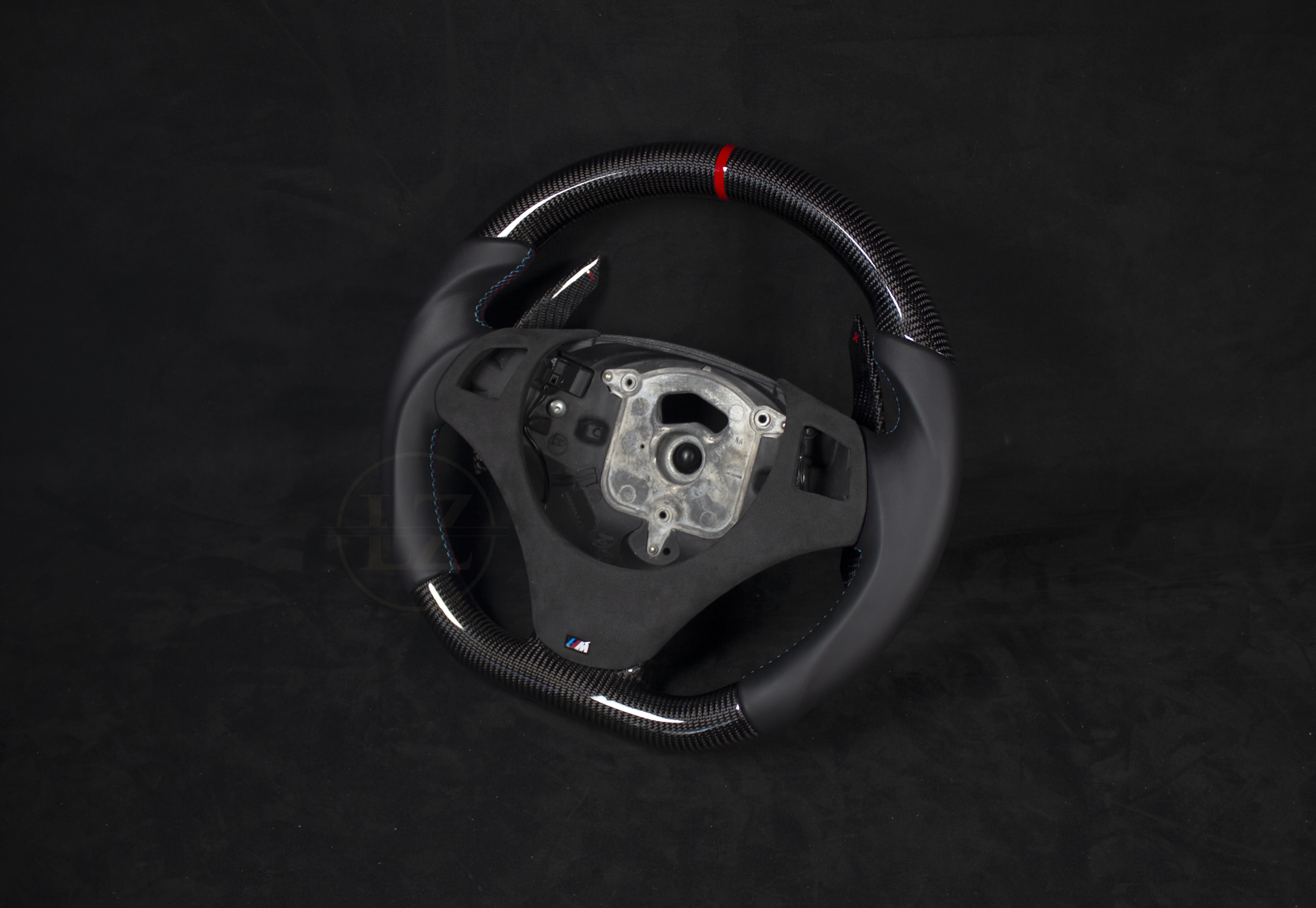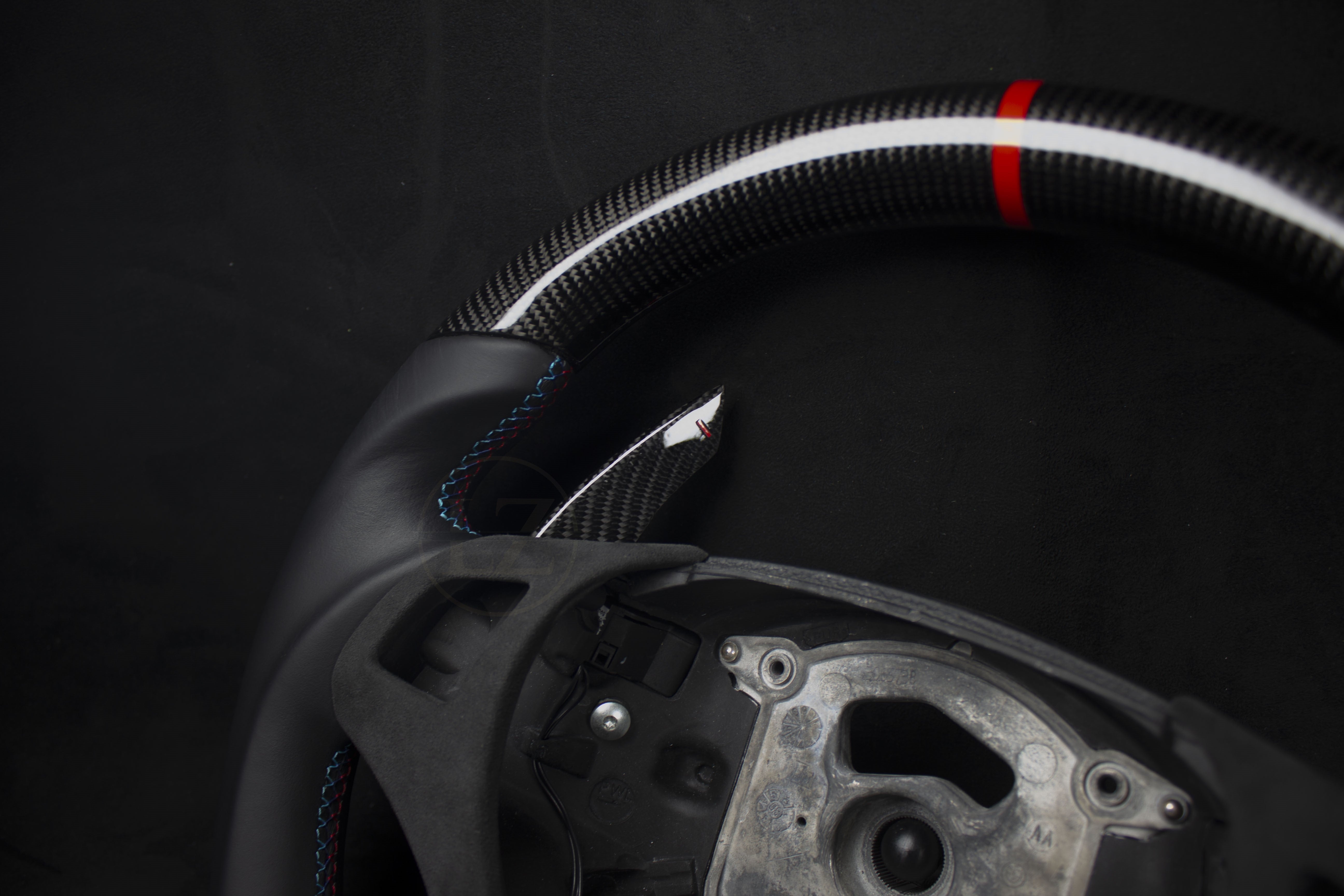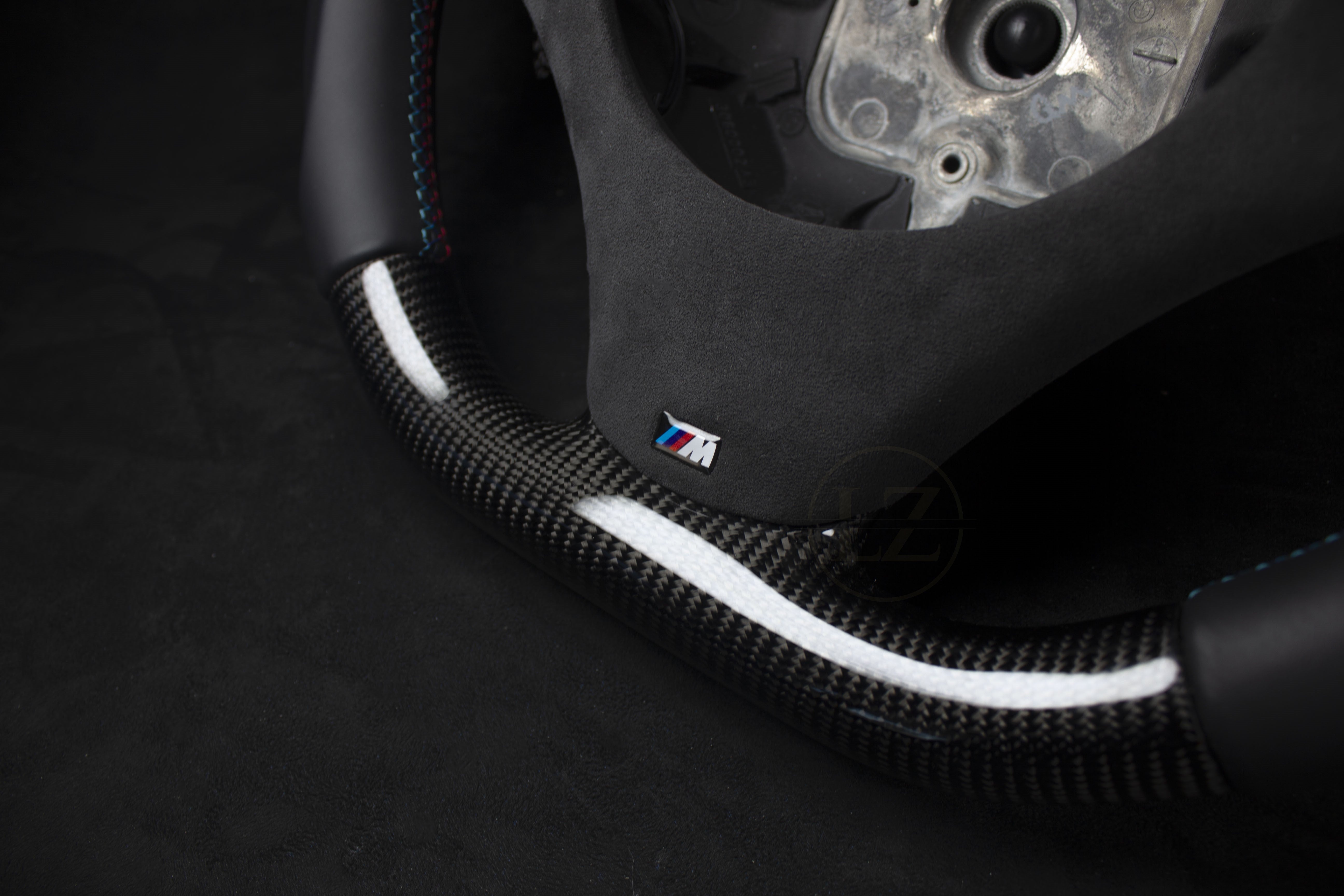 El volante está fabricado con la base original, lo que garantiza un ajuste perfecto sin modificaciones. Fabricado con cuero Alcántara y Nappa genuinos de alta calidad, además de carbono japonés, este producto es lujoso y duradero.