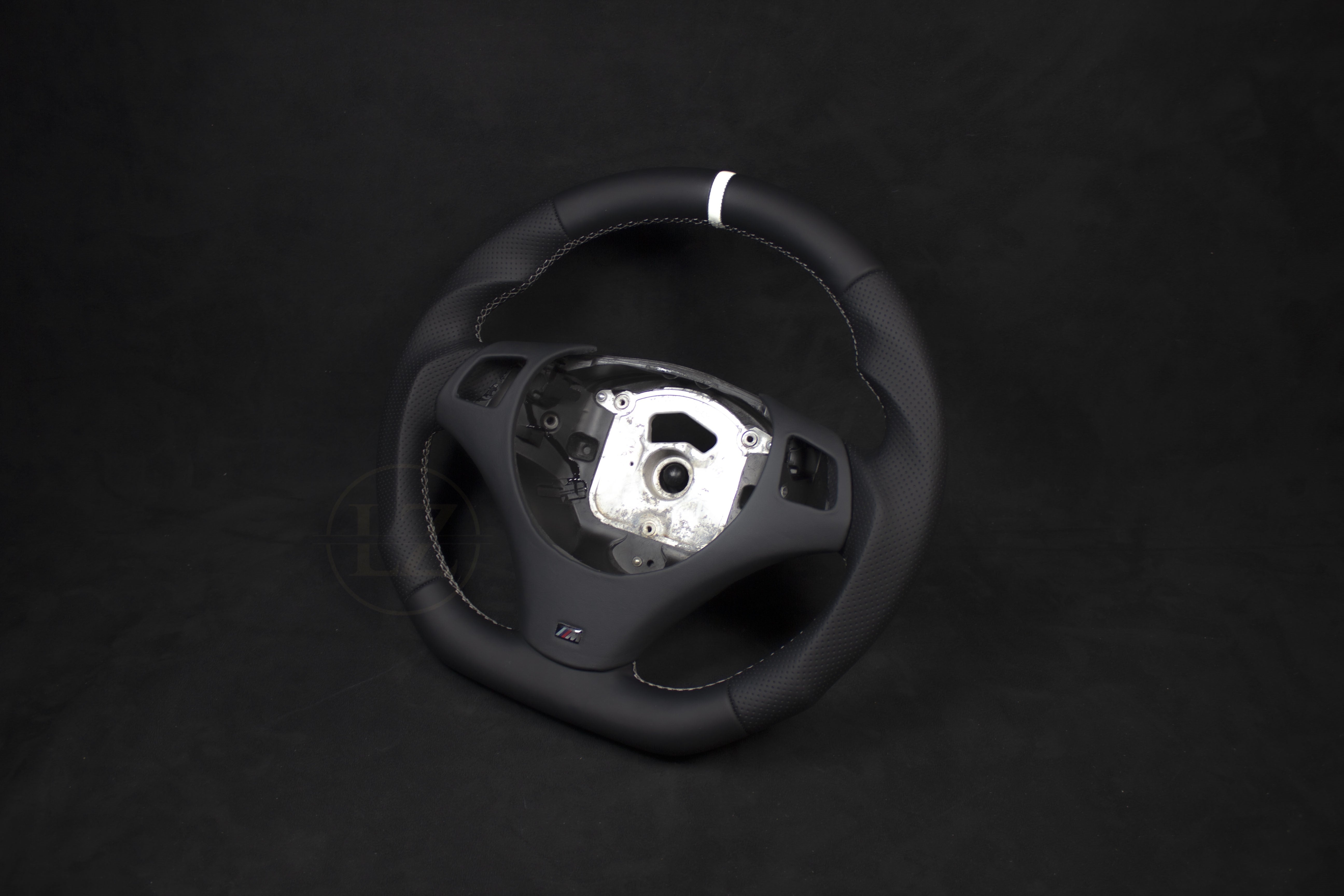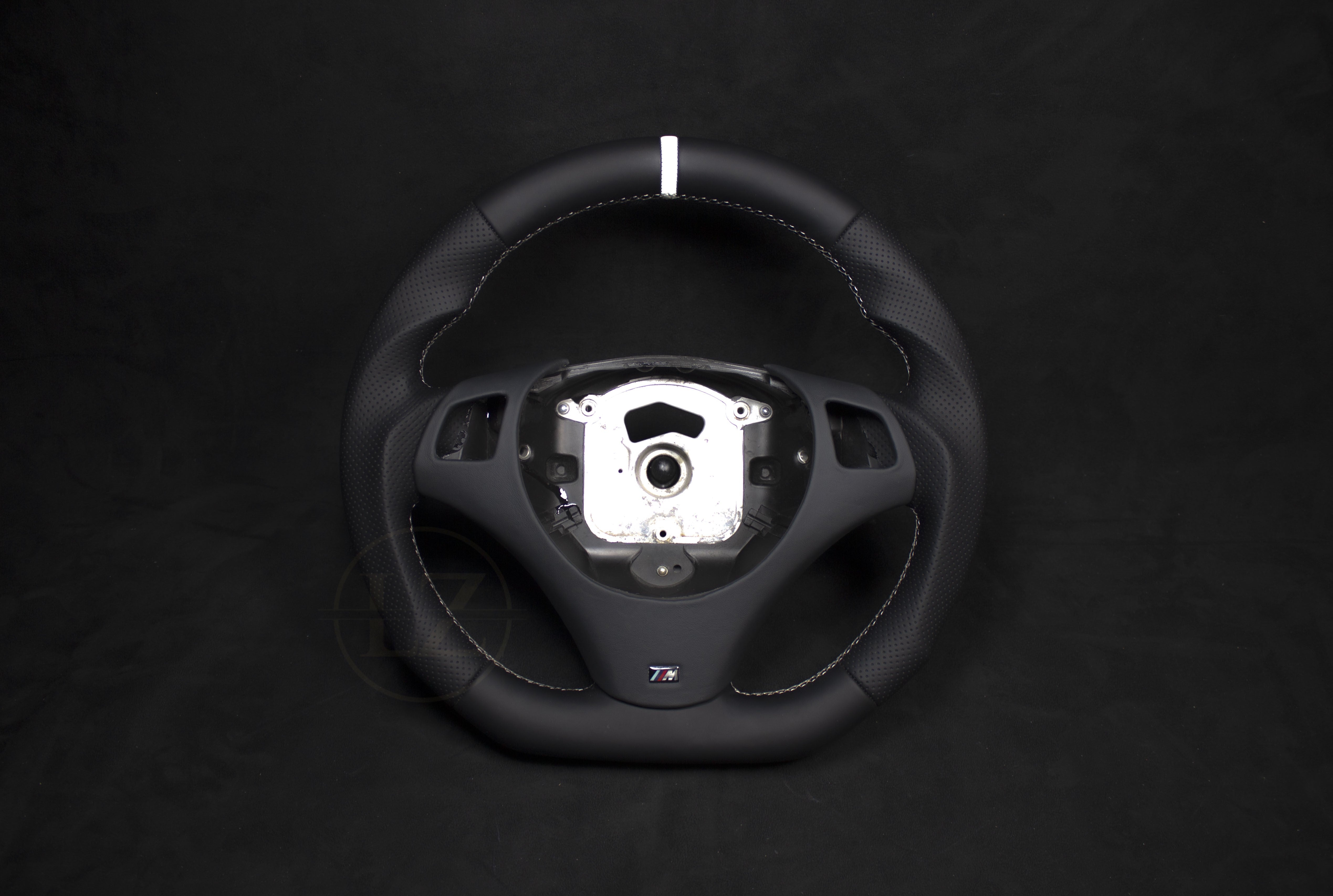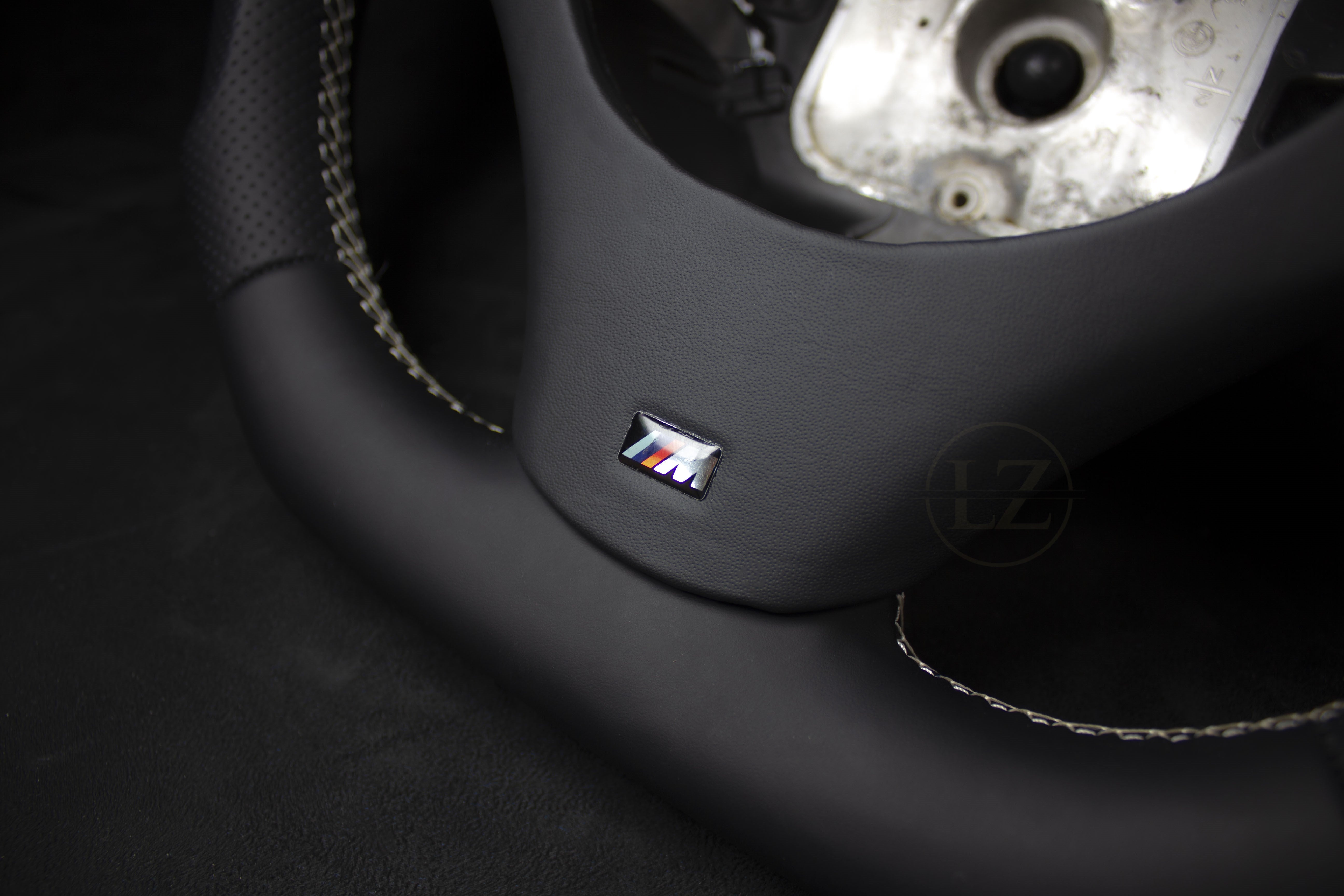 Descubre el exclusivo volante de cuero con detalles en blanco para BMW E8X/E9X, diseñado para mejorar tu experiencia de conducción. Este volante artesanal se adapta perfectamente a todos los modelos BMW E8X y E9X con volante M-Sport.