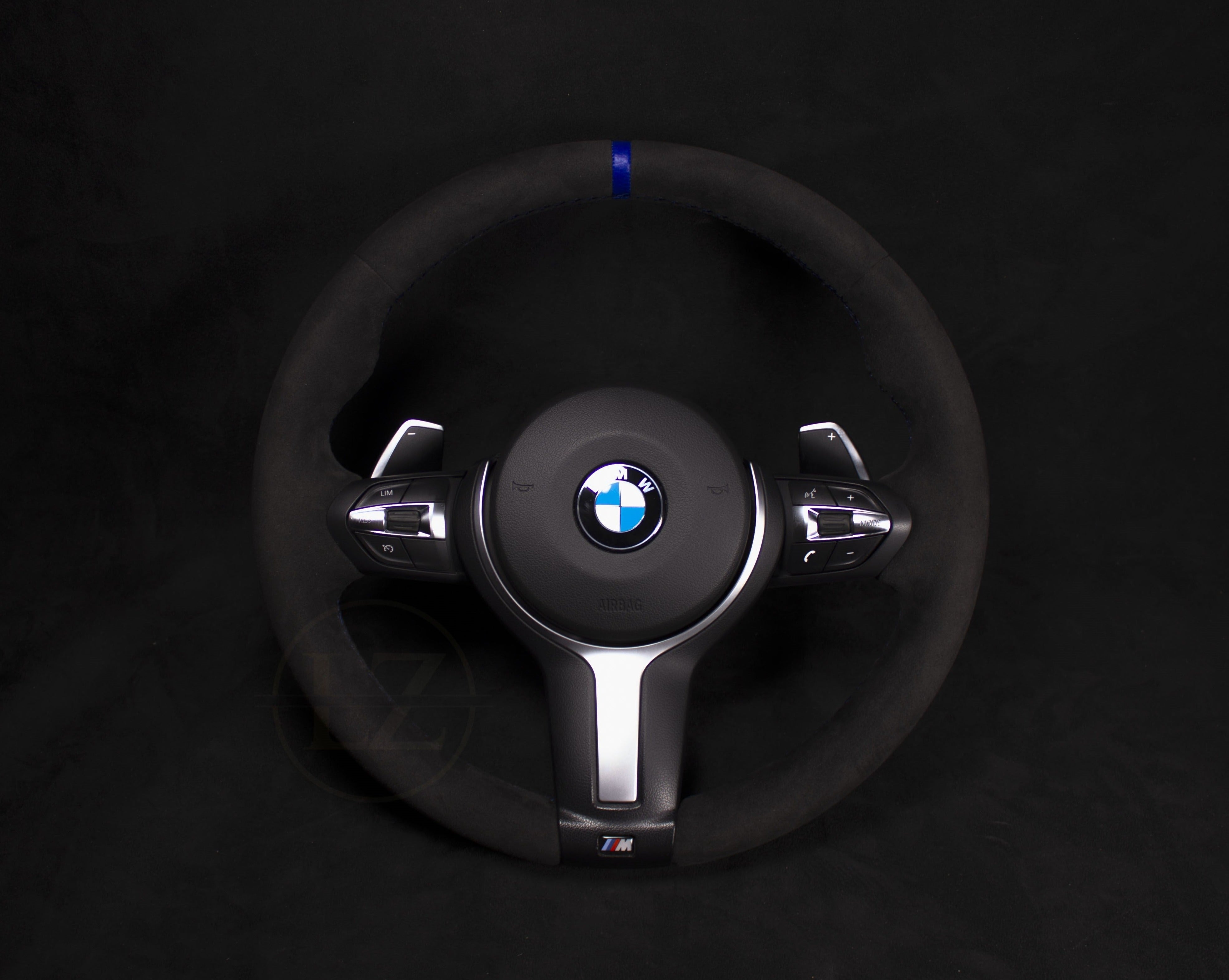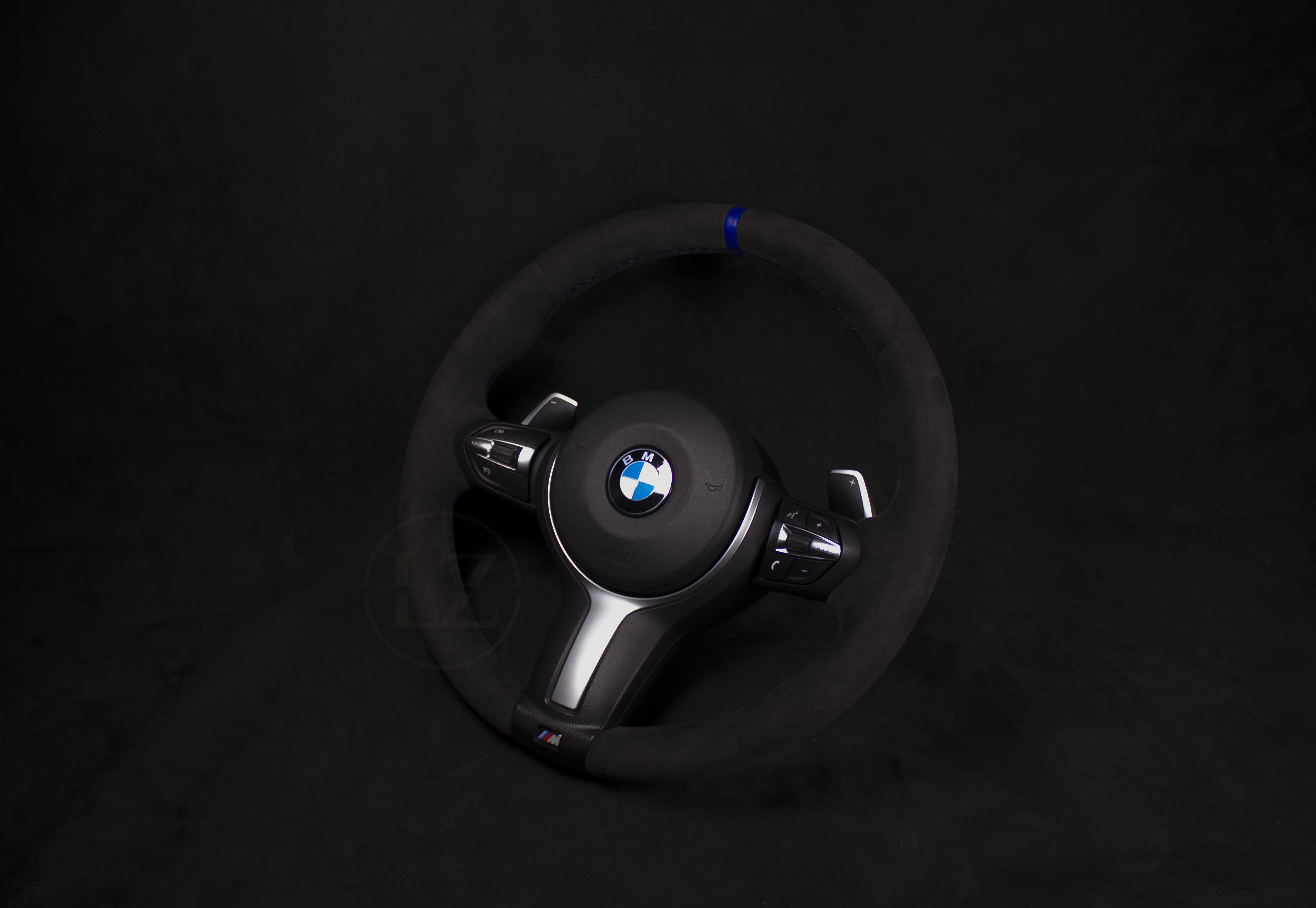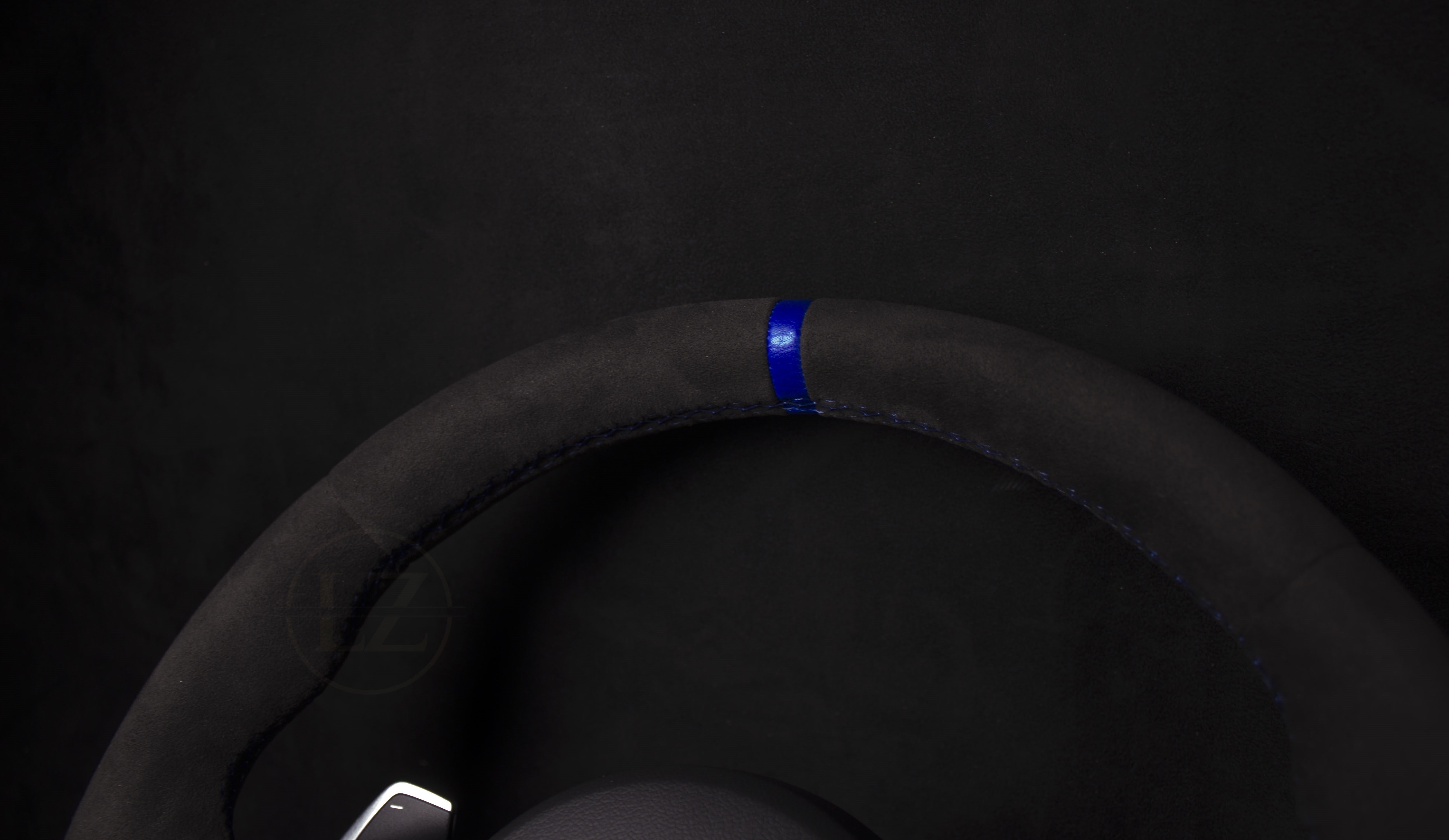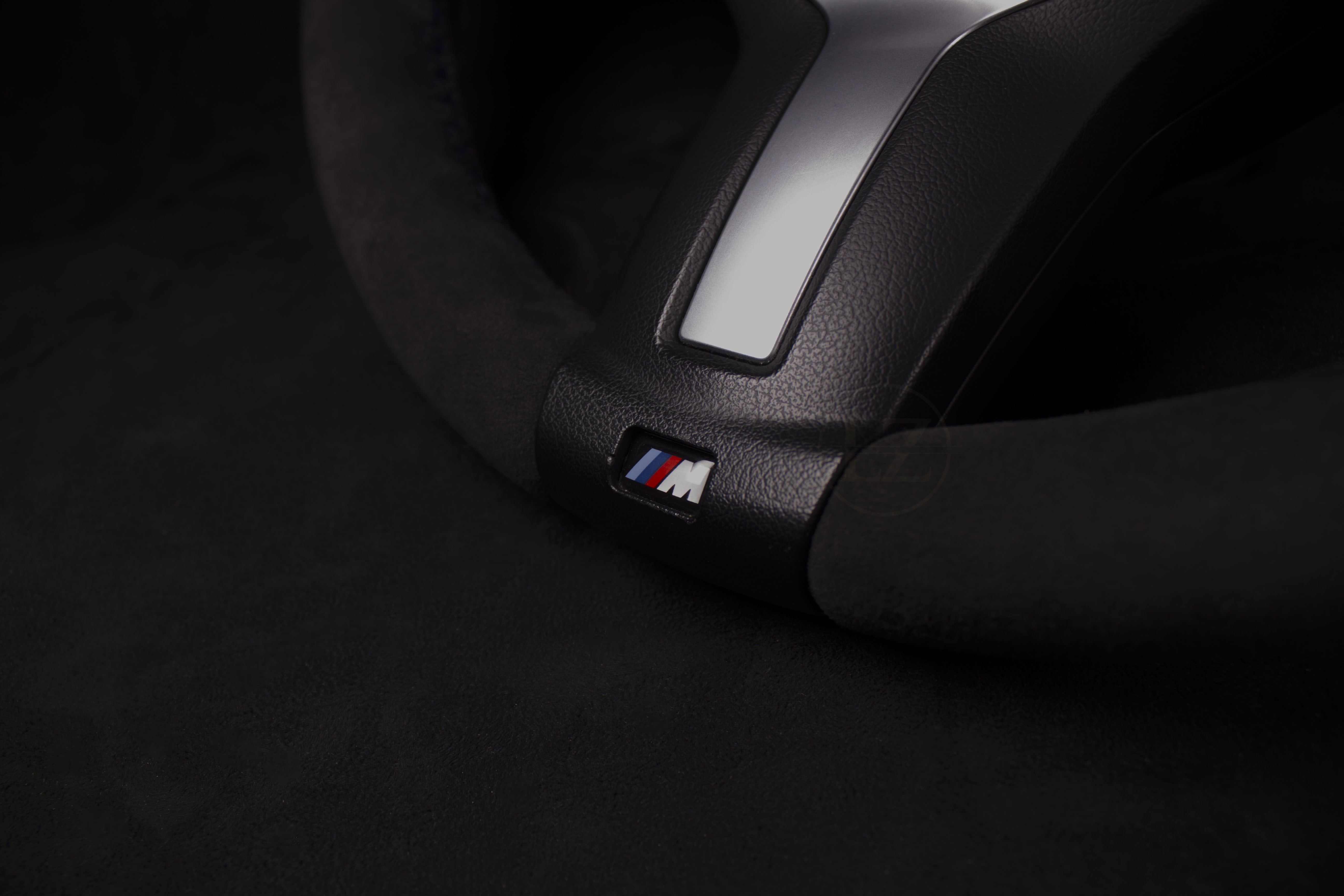 Descubra el exclusivo volante Alcantara de la BMW Serie F con detalles en azul, diseñado para mejorar su experiencia de conducción. Este volante artesanal se adapta perfectamente a todos los BMW F2X, 3X y 8X con volante M-Sport, ofreciendo una calidad y un estilo inigualables.