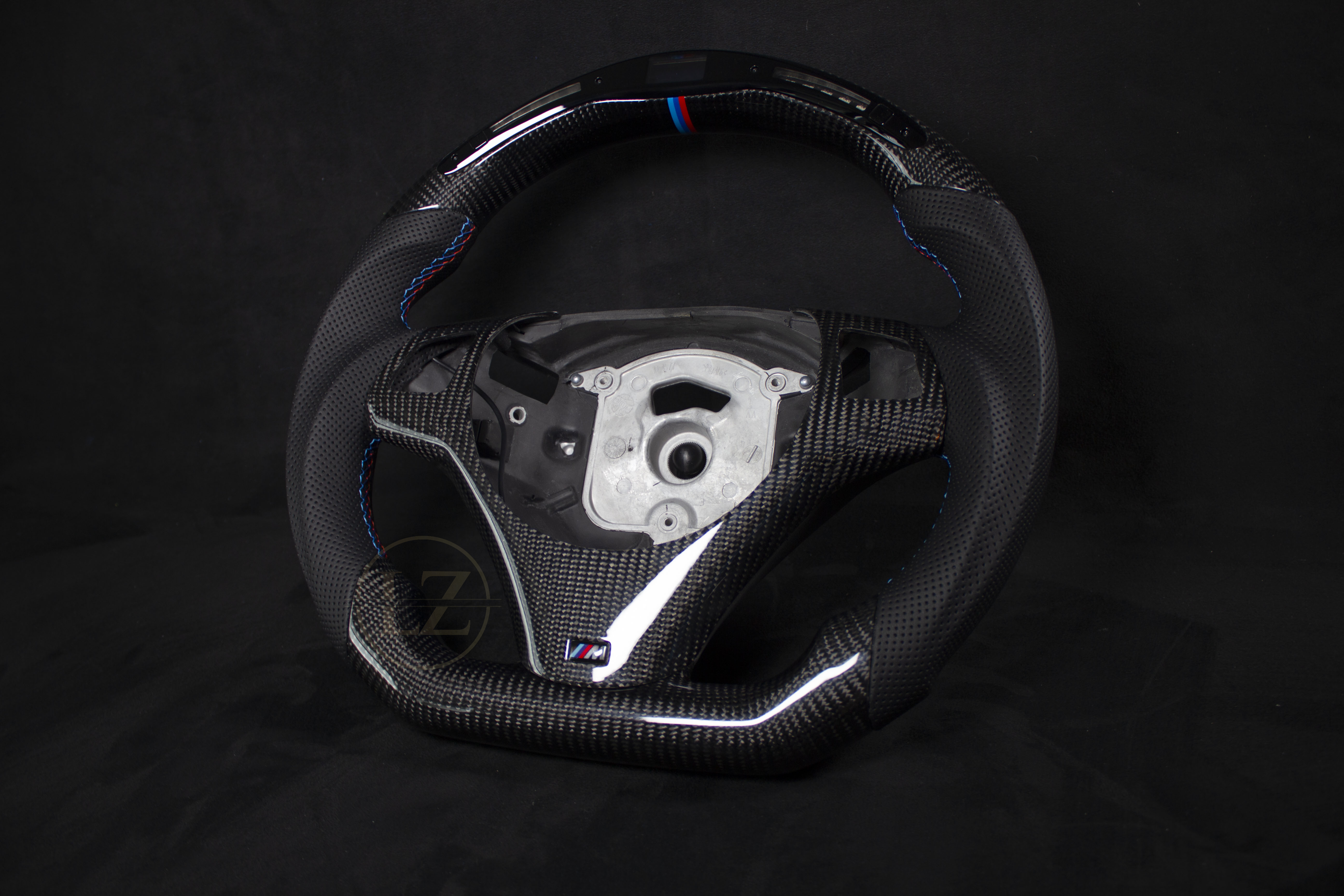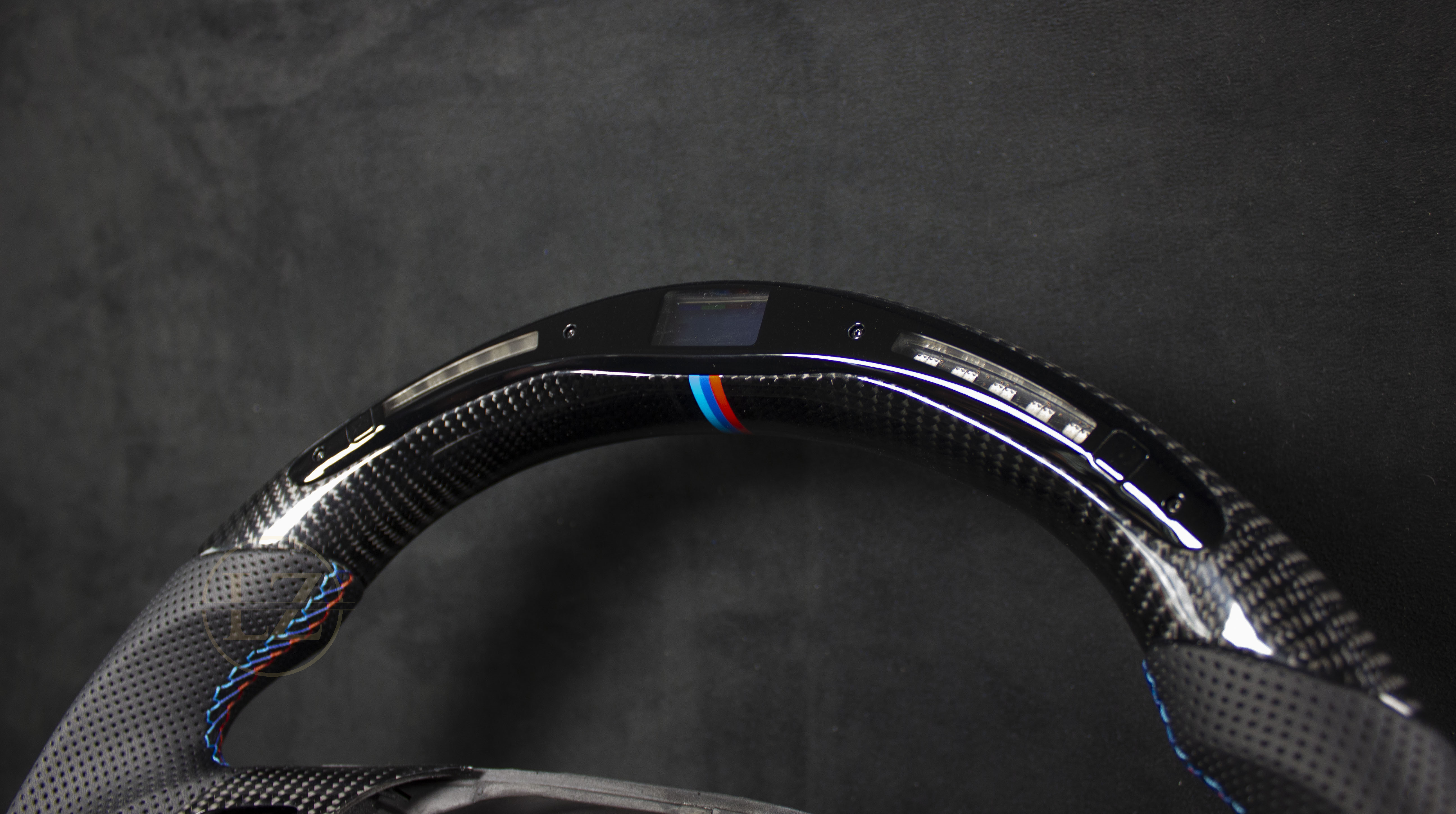 Descubre el exclusivo volante de carbono/cuero con LED para BMW E8X/E9X, una joya artesanal que combina a la perfección con todos los BMW E8X y E9X con volantes M-Sport. Este volante no es solo un accesorio, sino una mejora que le da a tu coche un toque exclusivo.