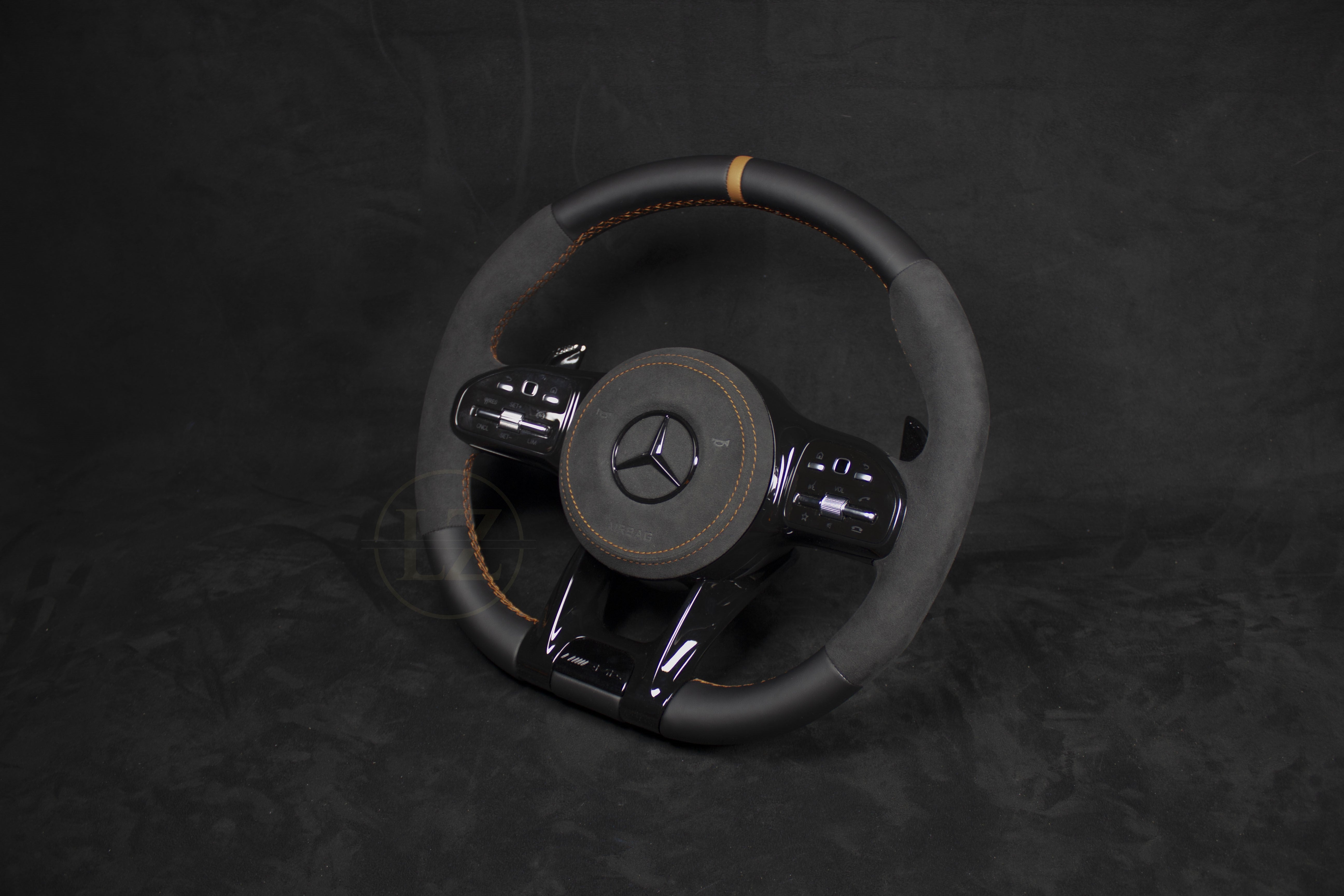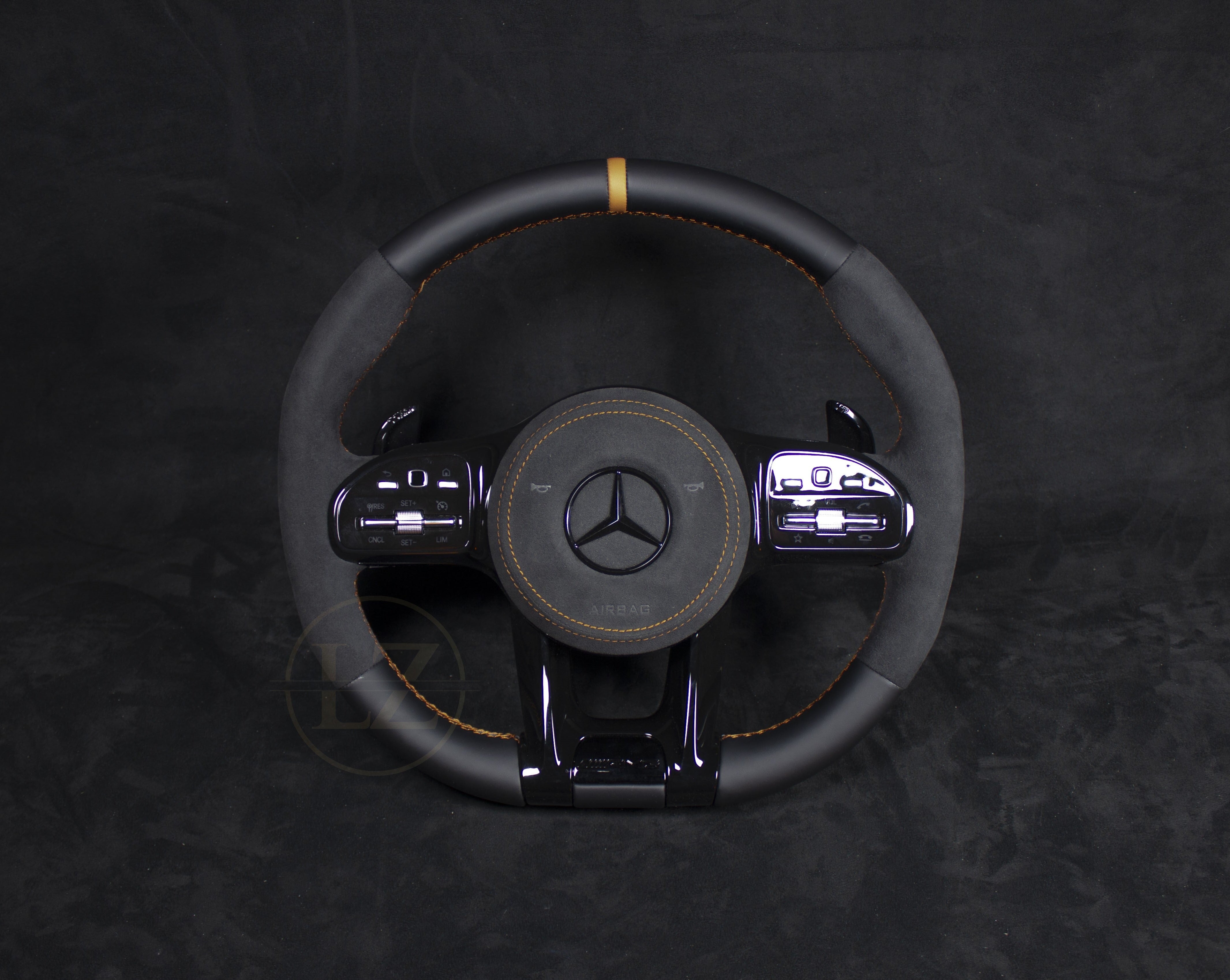 Descubra el exclusivo volante Mercedes-Benz C63 AMG de Alcántara/cuero con detalles marrones: una combinación perfecta de estilo y funcionalidad. Este volante artesanal está hecho a medida para el modelo C63 y ofrece una calidad excepcional hasta el último detalle.