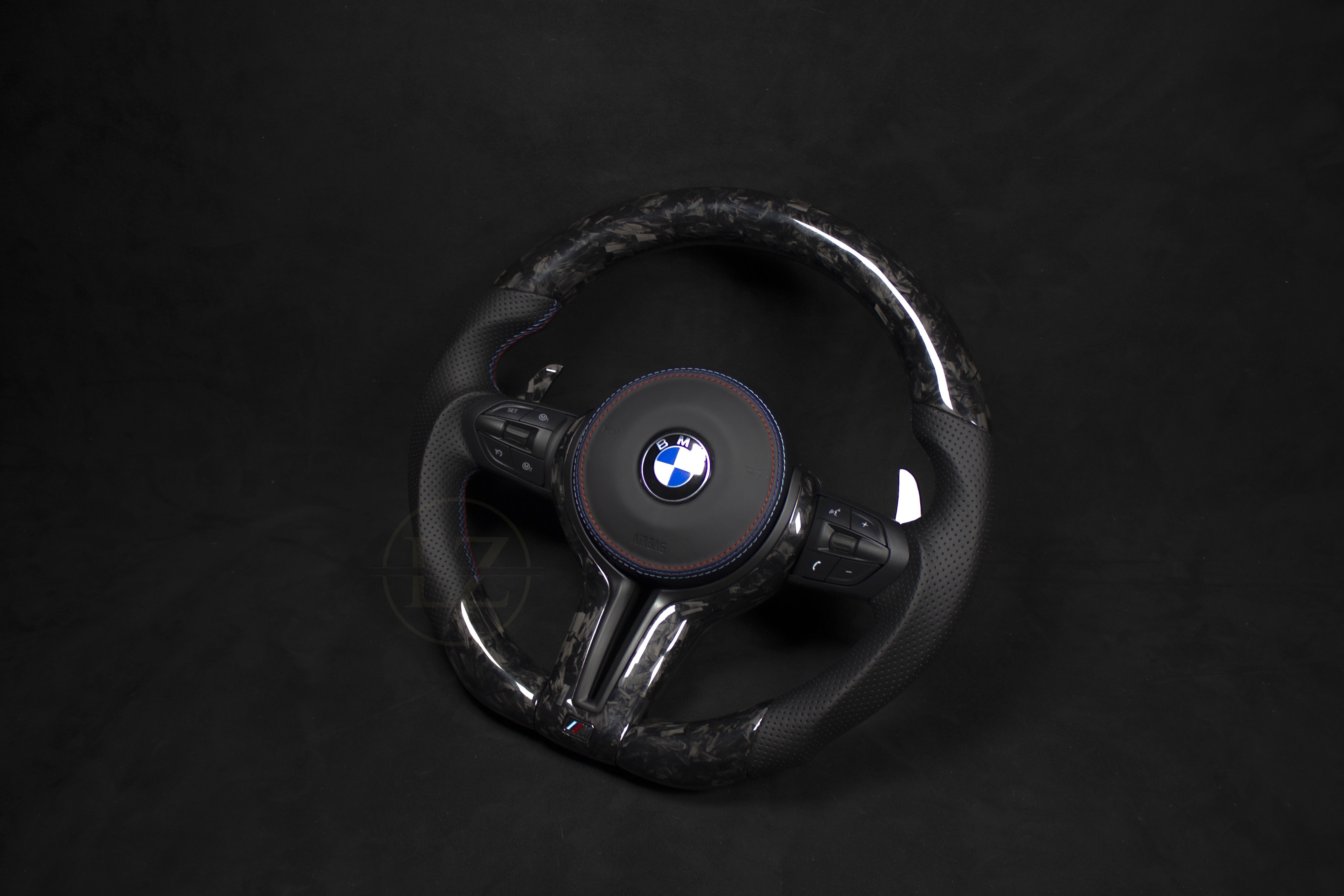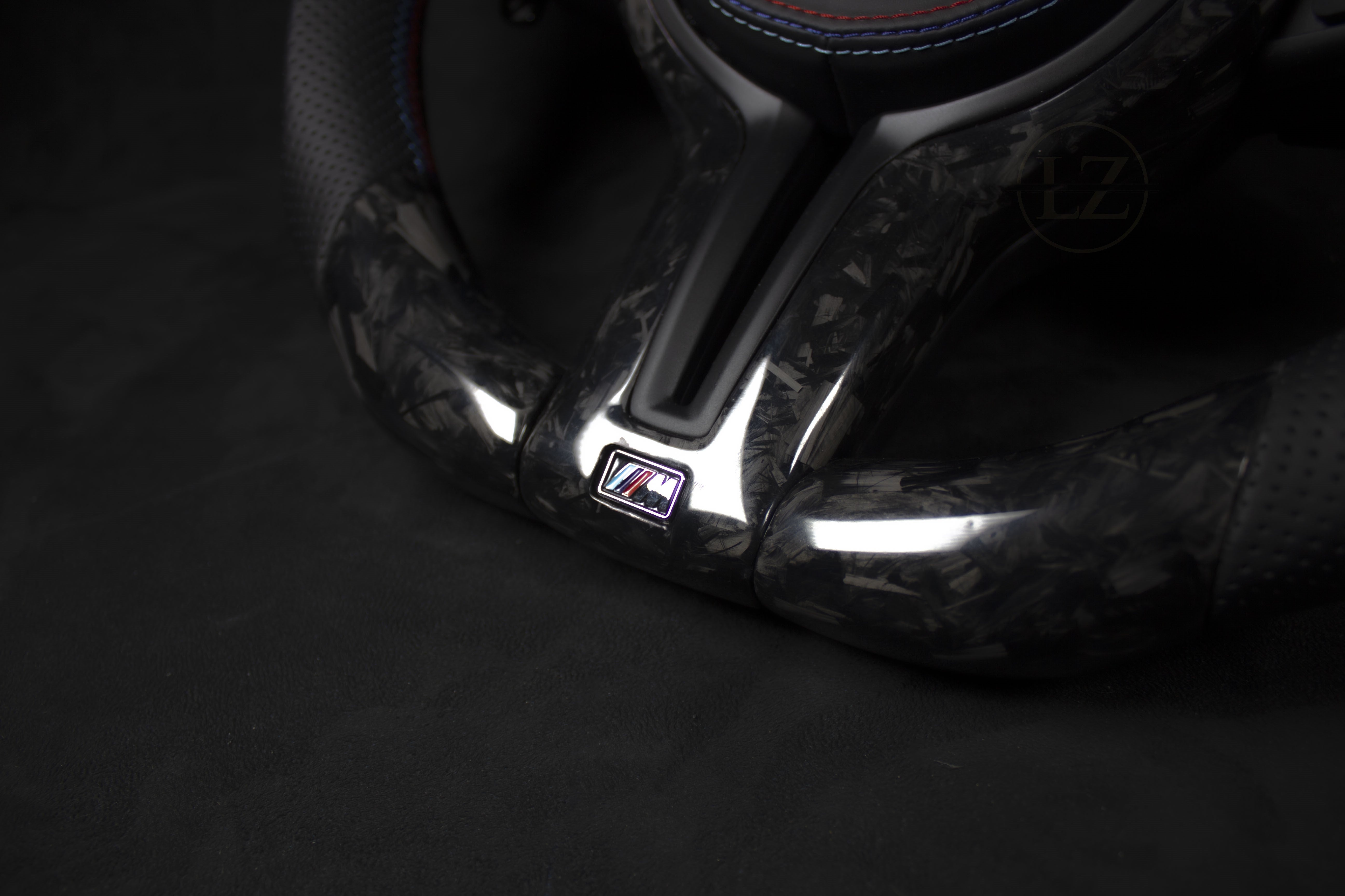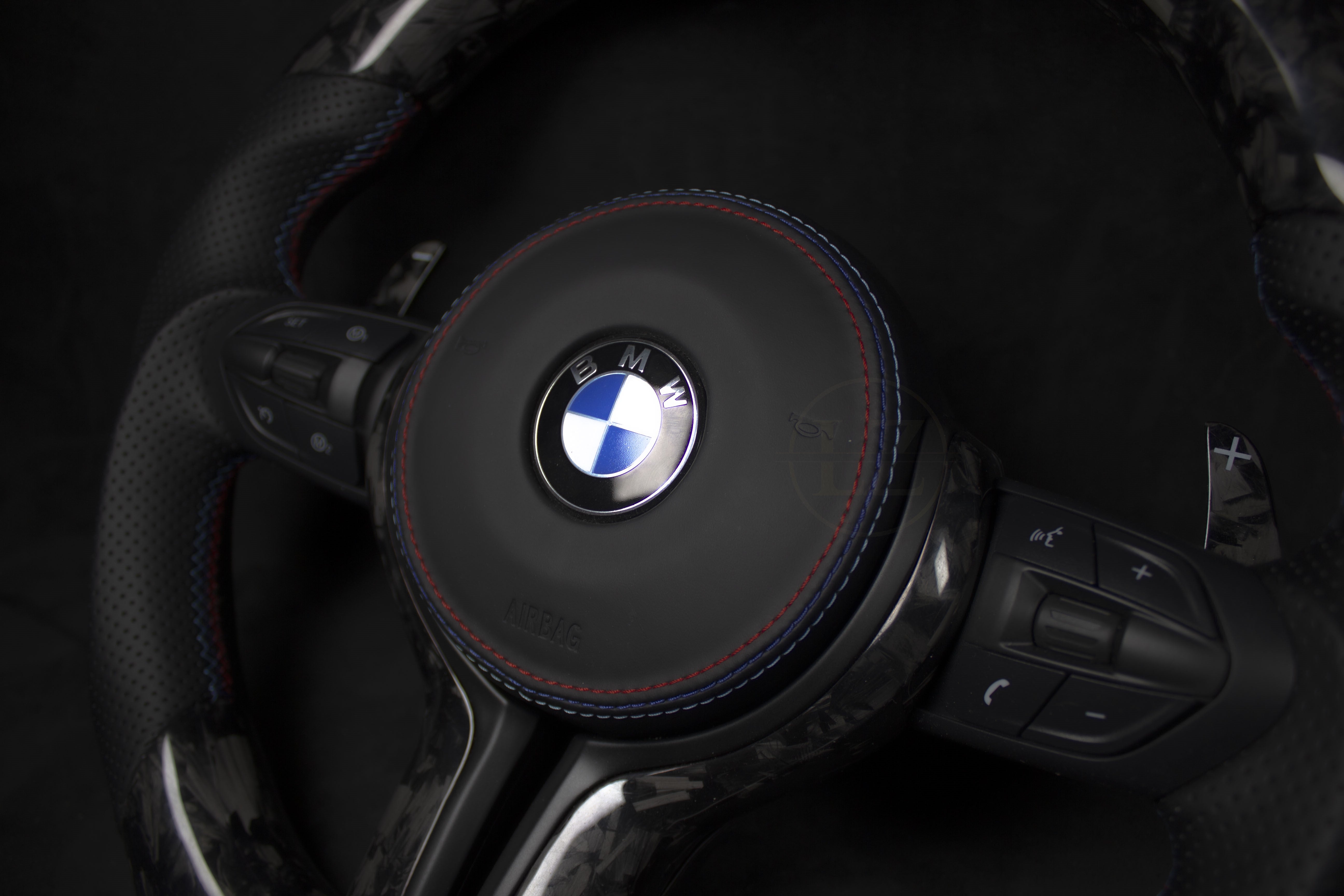 Découvrez le volant unique BMW Série F en carbone forgé et cuir, détails M, conçu pour toutes les BMW F2X, 3X et 8X équipées de volants M-Sport. Ce volant fabriqué main allie à la perfection style et fonctionnalité.