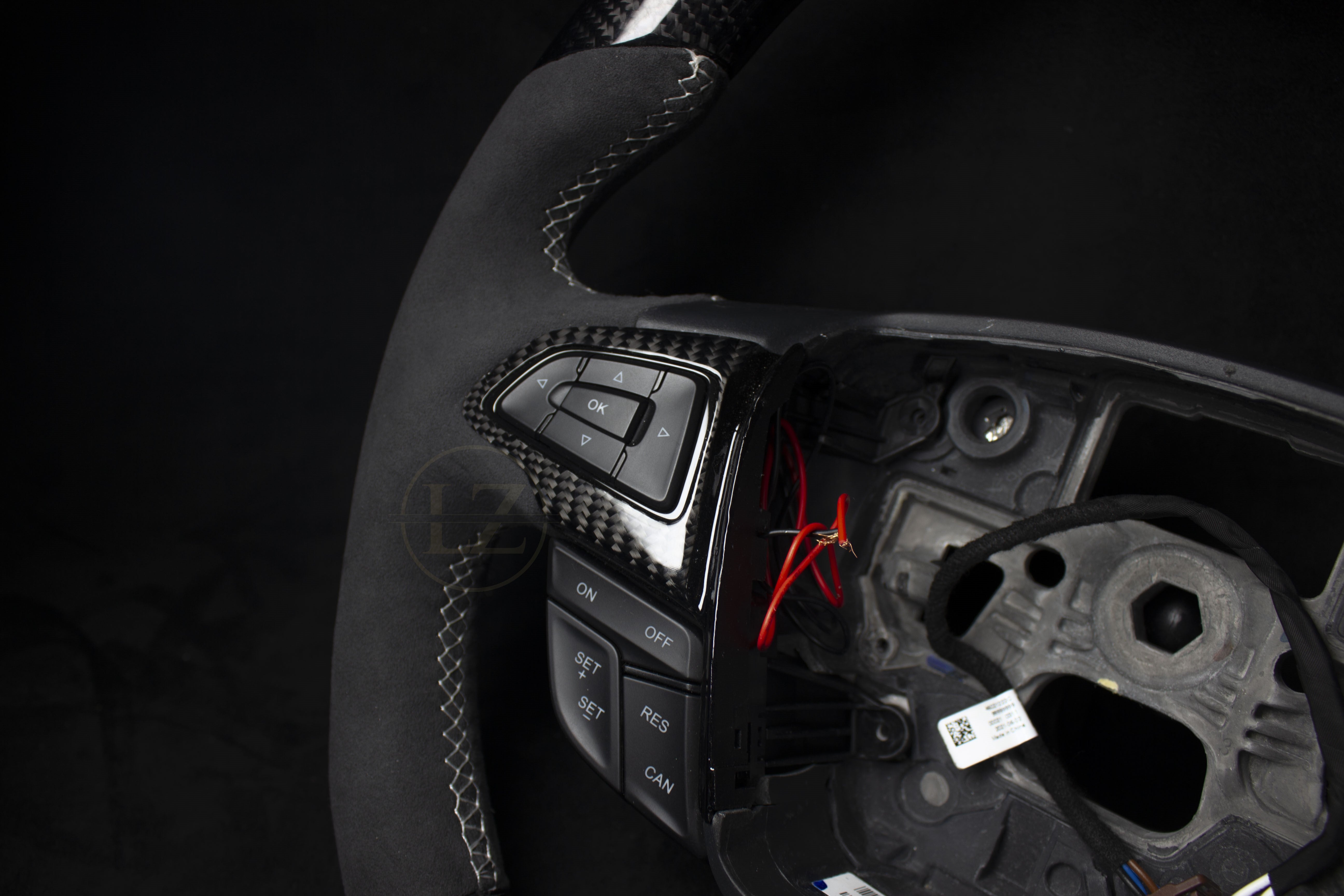 Découvrez le volant unique Ford Focus ST/RS MK3 en Alcantara/Carbone + LED, alliant style et fonctionnalité. Fabriqué à la main, ce volant est conçu sur mesure pour la Focus RS/ST MK3, offrant une expérience de conduite incomparable.