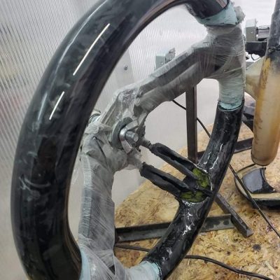 Une fois le volant coulé, il faut éliminer tous les résidus et le préparer pour la suite du travail. Il est essentiel de poncer toutes les irrégularités et déformations apparues lors du moulage. Il faut ensuite poncer le matériau et lui donner une surface légèrement plus rugueuse.