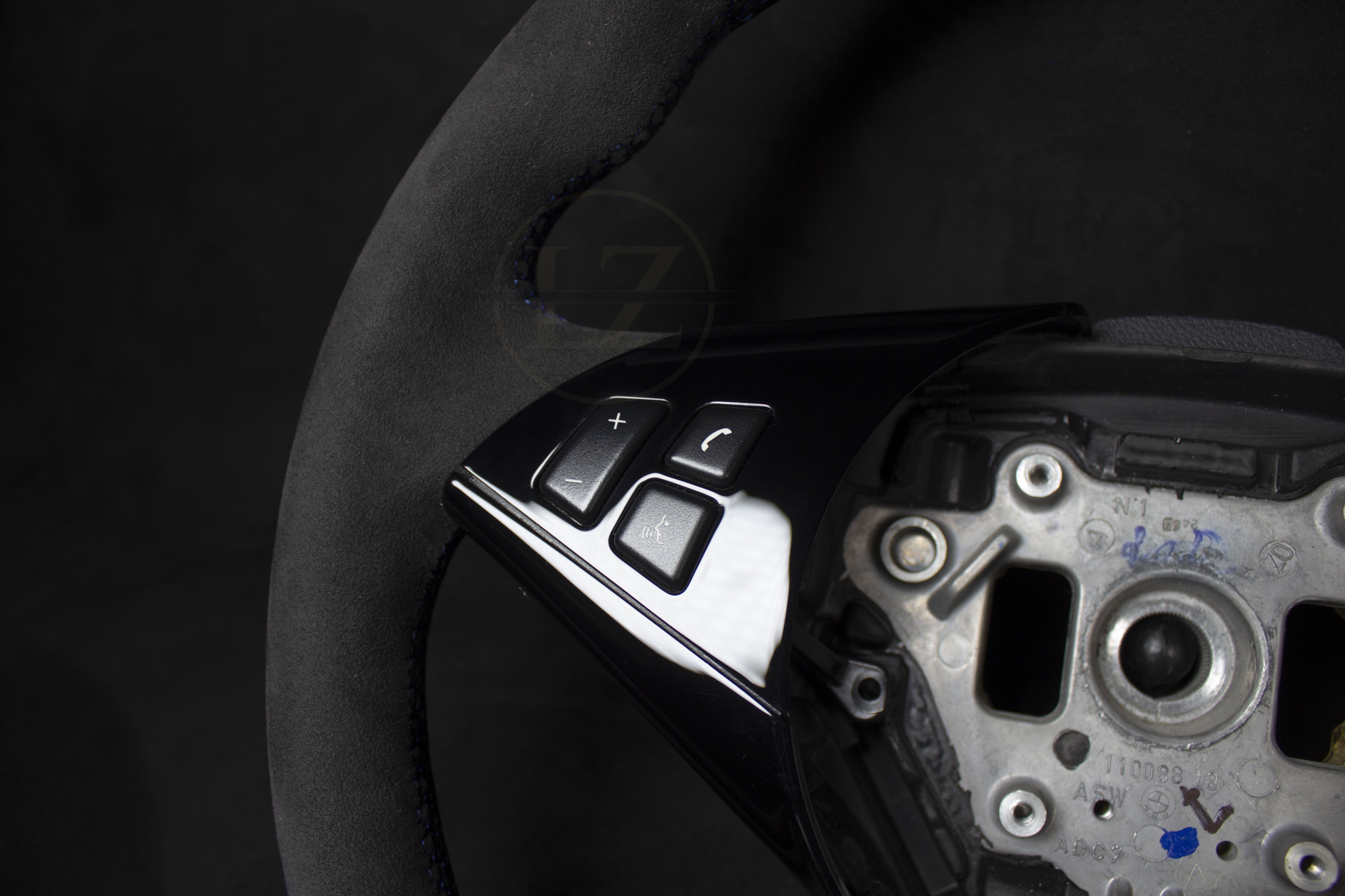 Découvrez le volant unique en Alcantara/Cuir avec détails bleus pour BMW E60 et E61, alliant style et fonctionnalité. Fabriqué à la main, ce volant est conçu sur mesure pour tous les modèles BMW E6X, garantissant un ajustement parfait sans modifications.