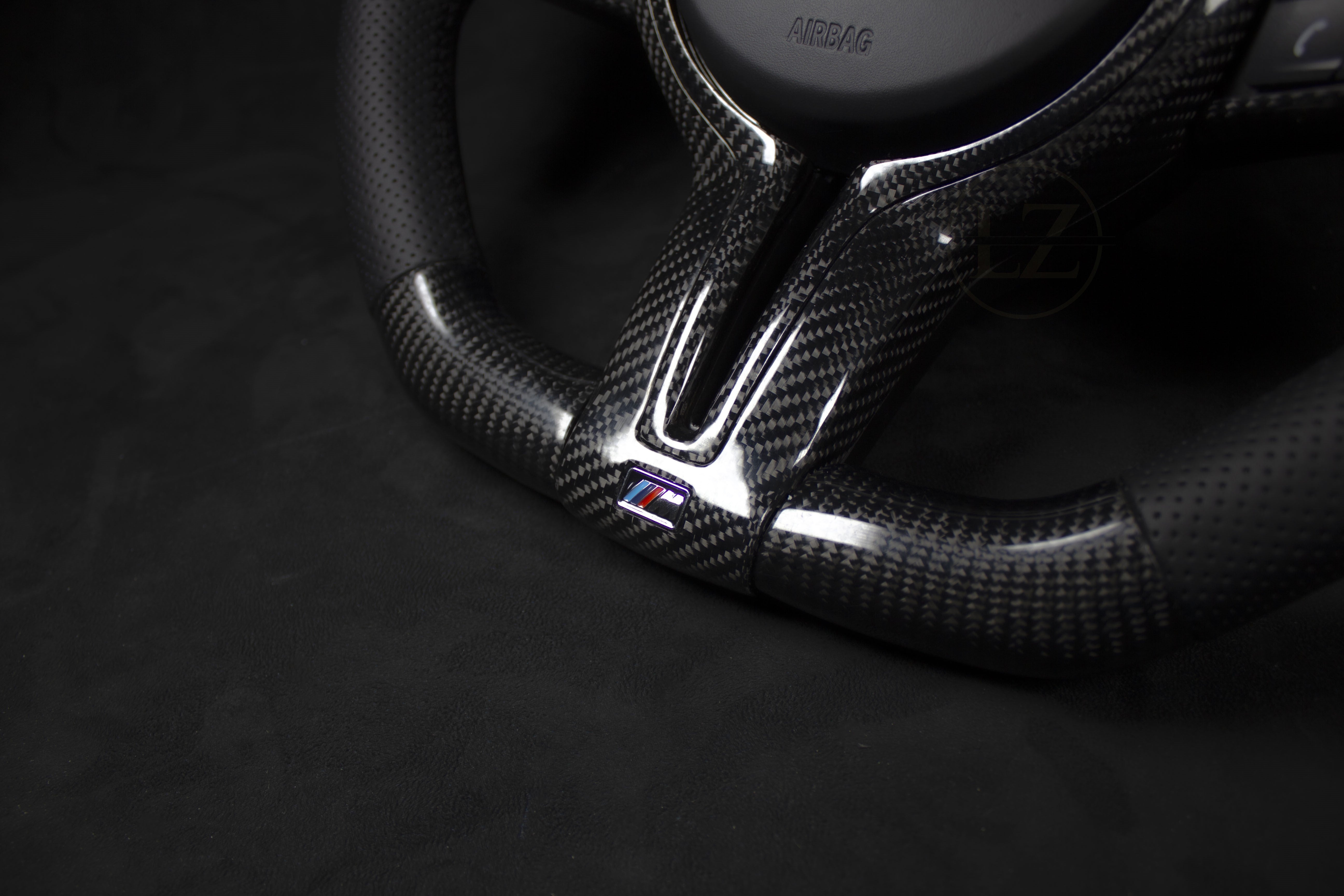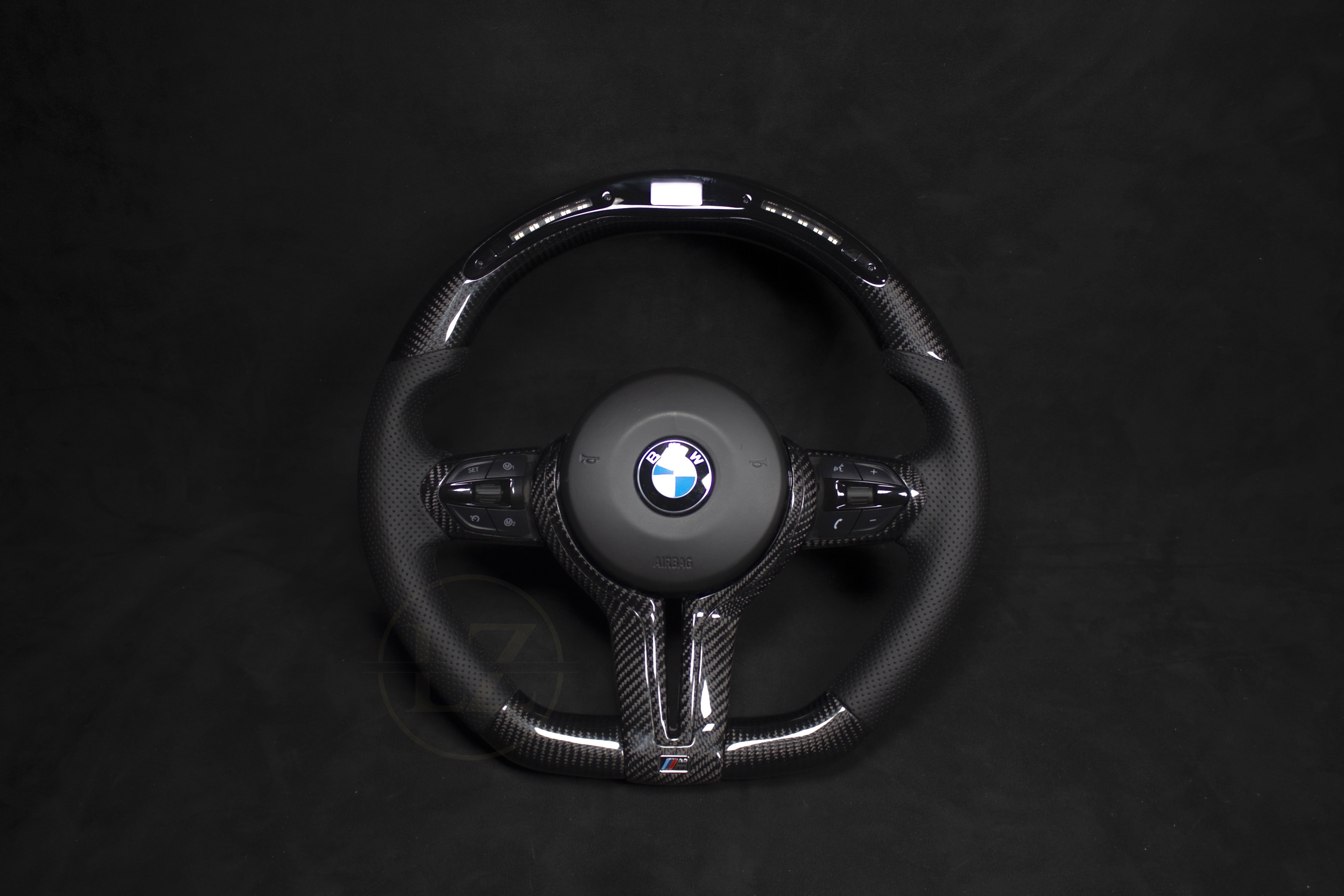 Découvrez le volant unique BMW Série F en cuir/carbone à LED, un bijou artisanal qui s'adapte parfaitement à toutes les BMW F2X, 3X et 8X équipées du volant M-Sport. Plus qu'un simple accessoire, ce volant est une véritable amélioration qui sublime l'expérience de conduite.