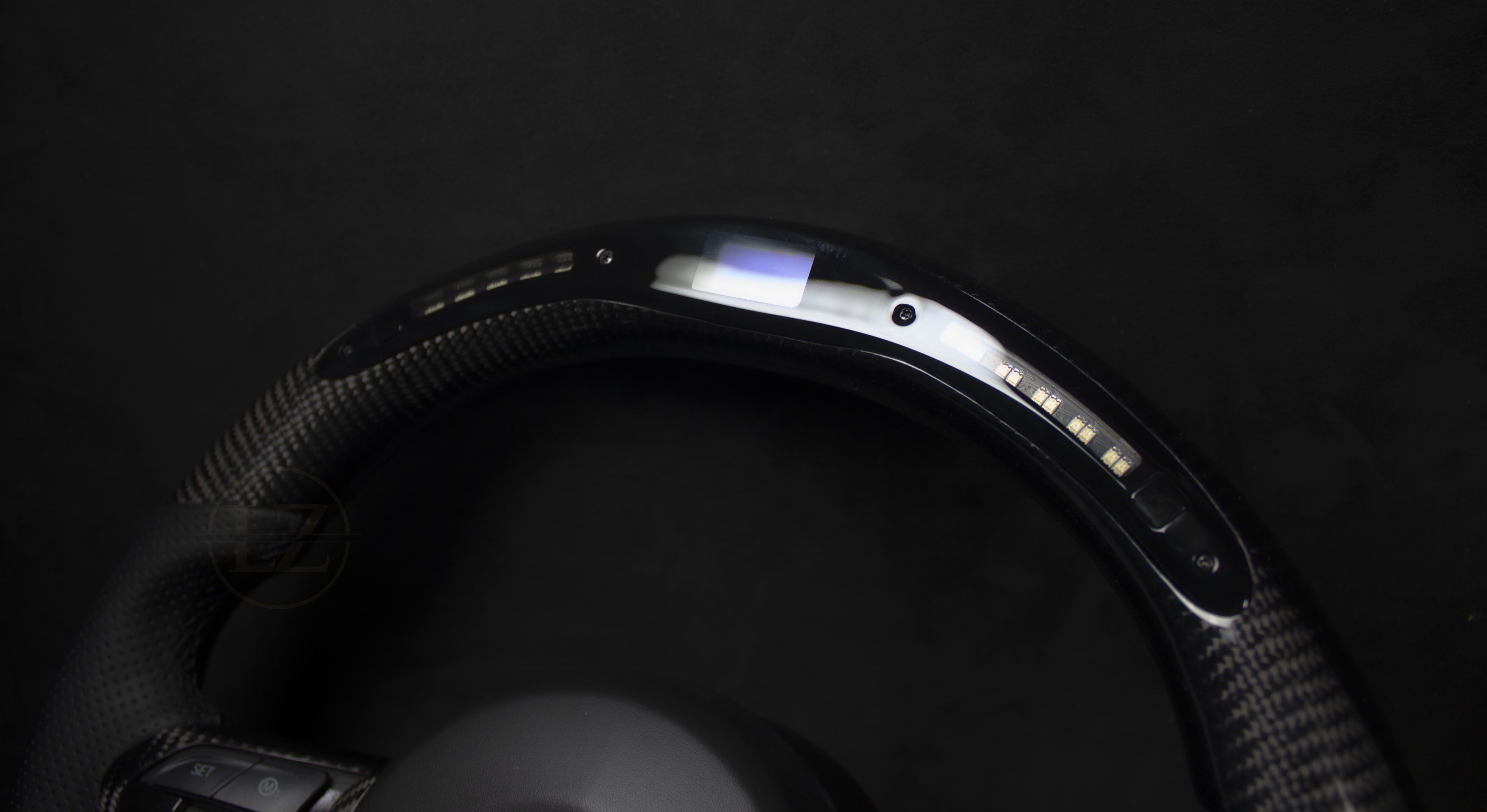 Avec du cuir Alcantara et Nappa véritables d'Italie, ainsi que du carbone importé du Japon, la qualité est inégalée. Le volant est doté de cuir perforé sur les côtés, de poignées plus épaisses et d'une base plate, alliant style et confort.