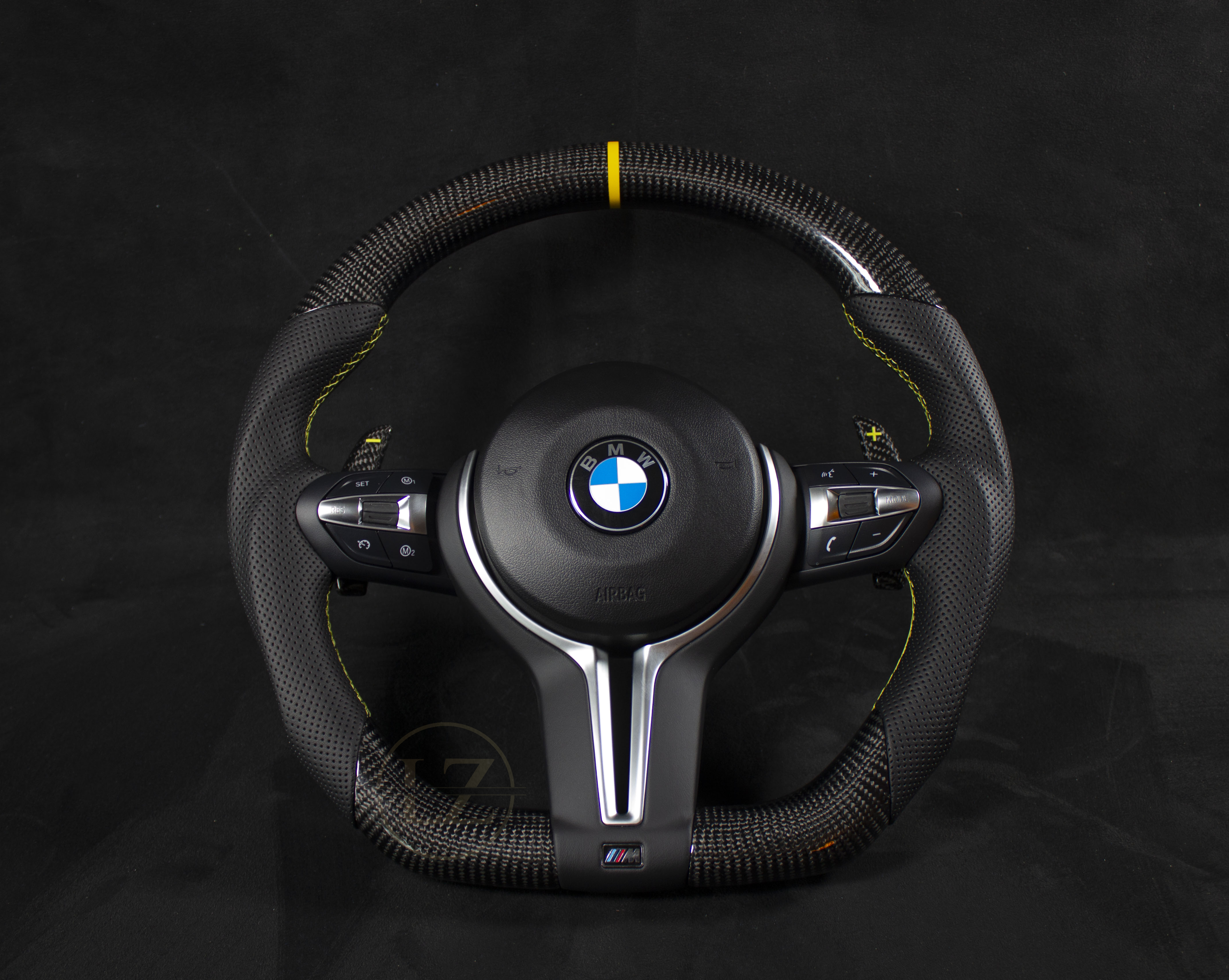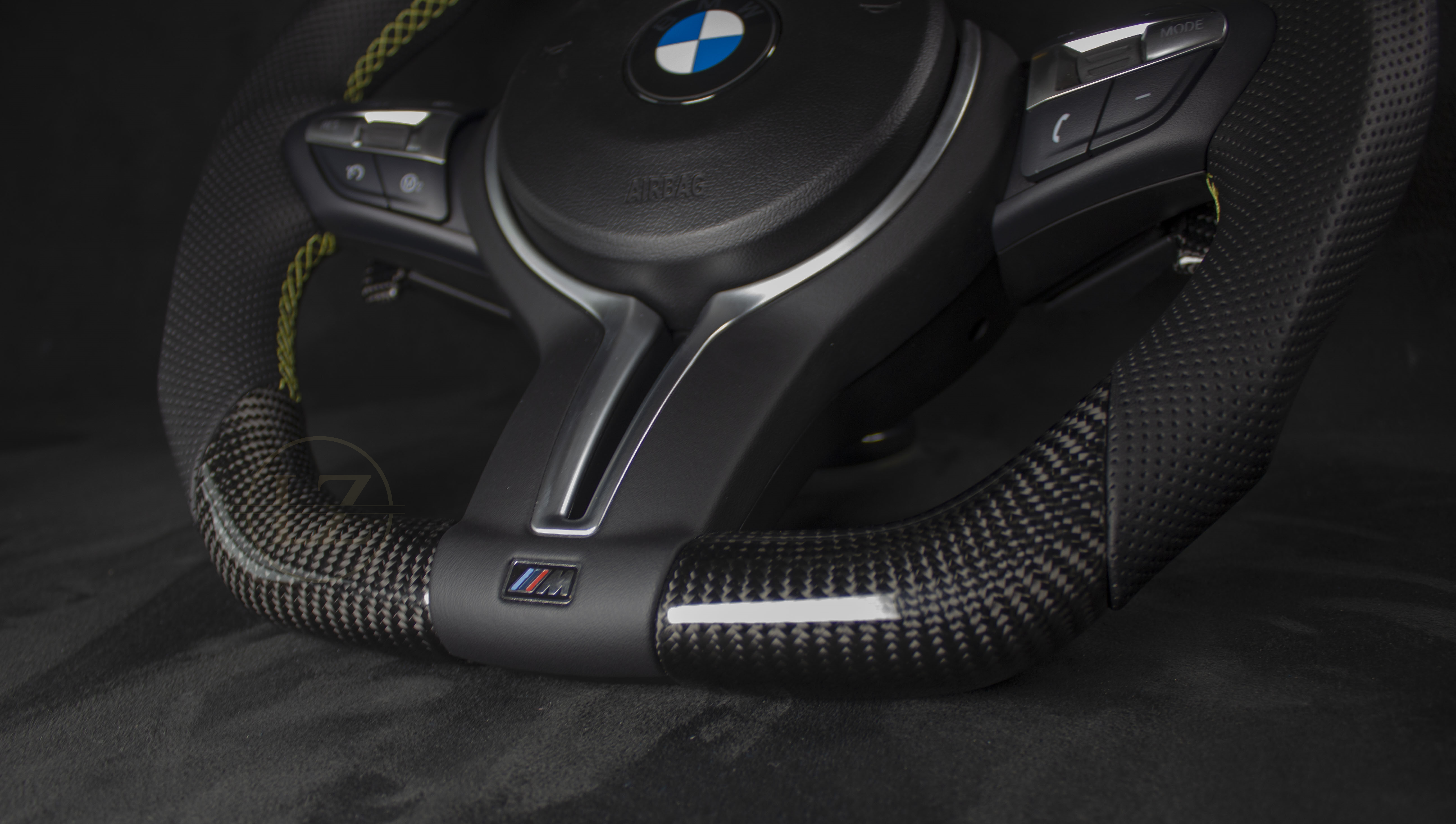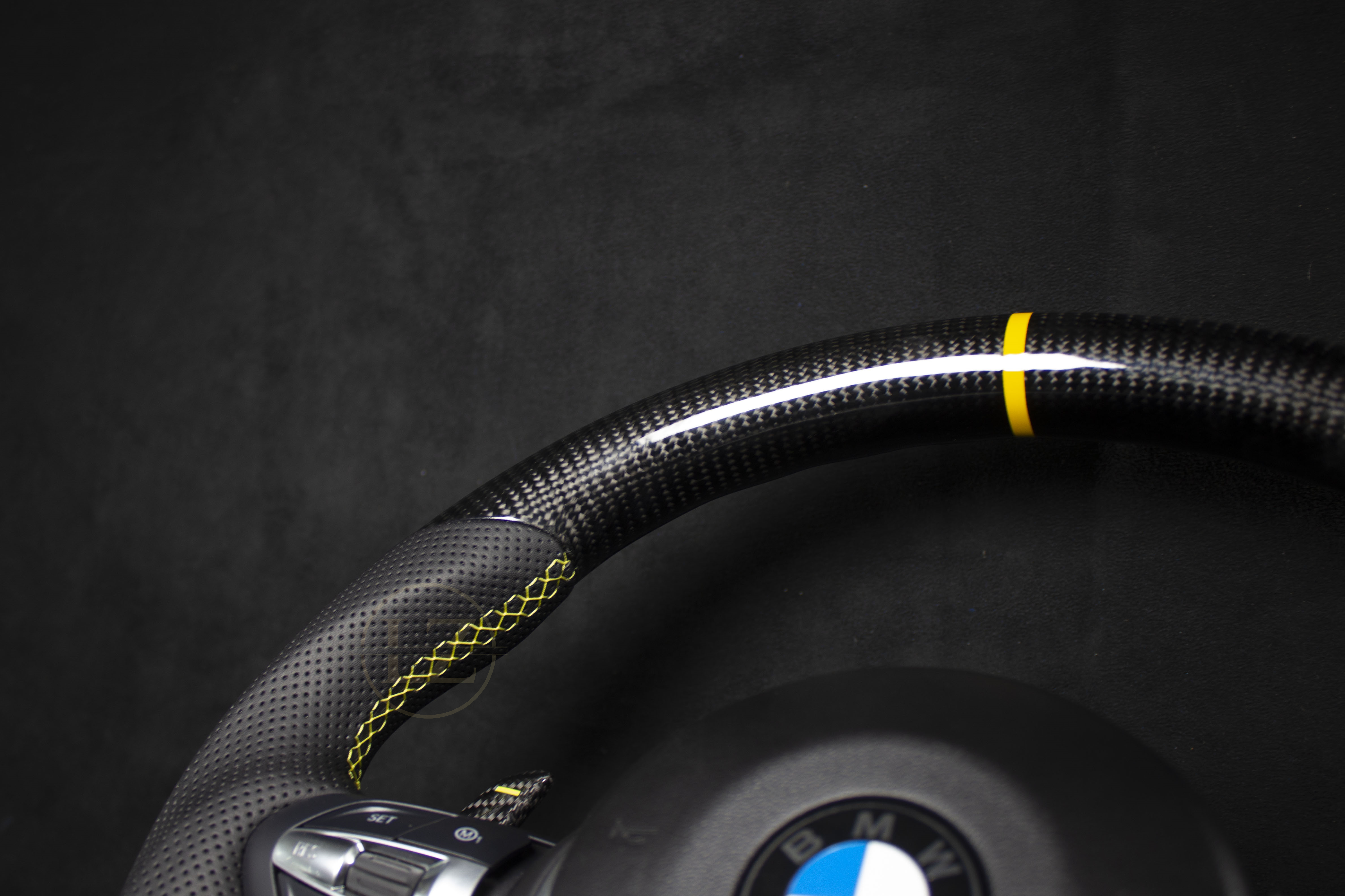 Oppdag det unike BMW F-Serie Carbon/Skinn Rattet med gule detaljer, designet for å heve kjøreopplevelsen din. Dette håndlagde rattet passer perfekt til alle BMW F2X, 3X og 8X med M-Sport ratt, og gir enestående kvalitet og stil.