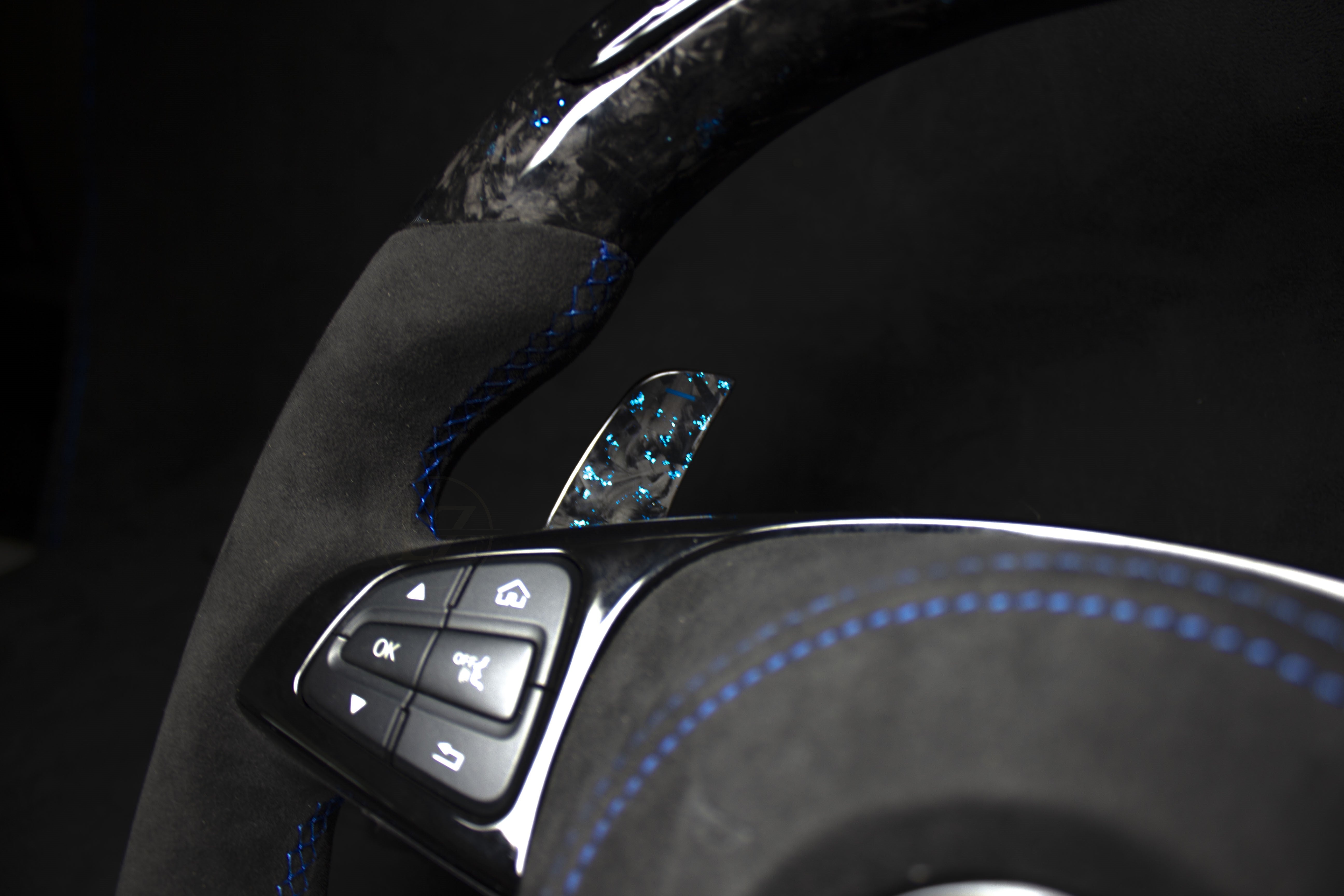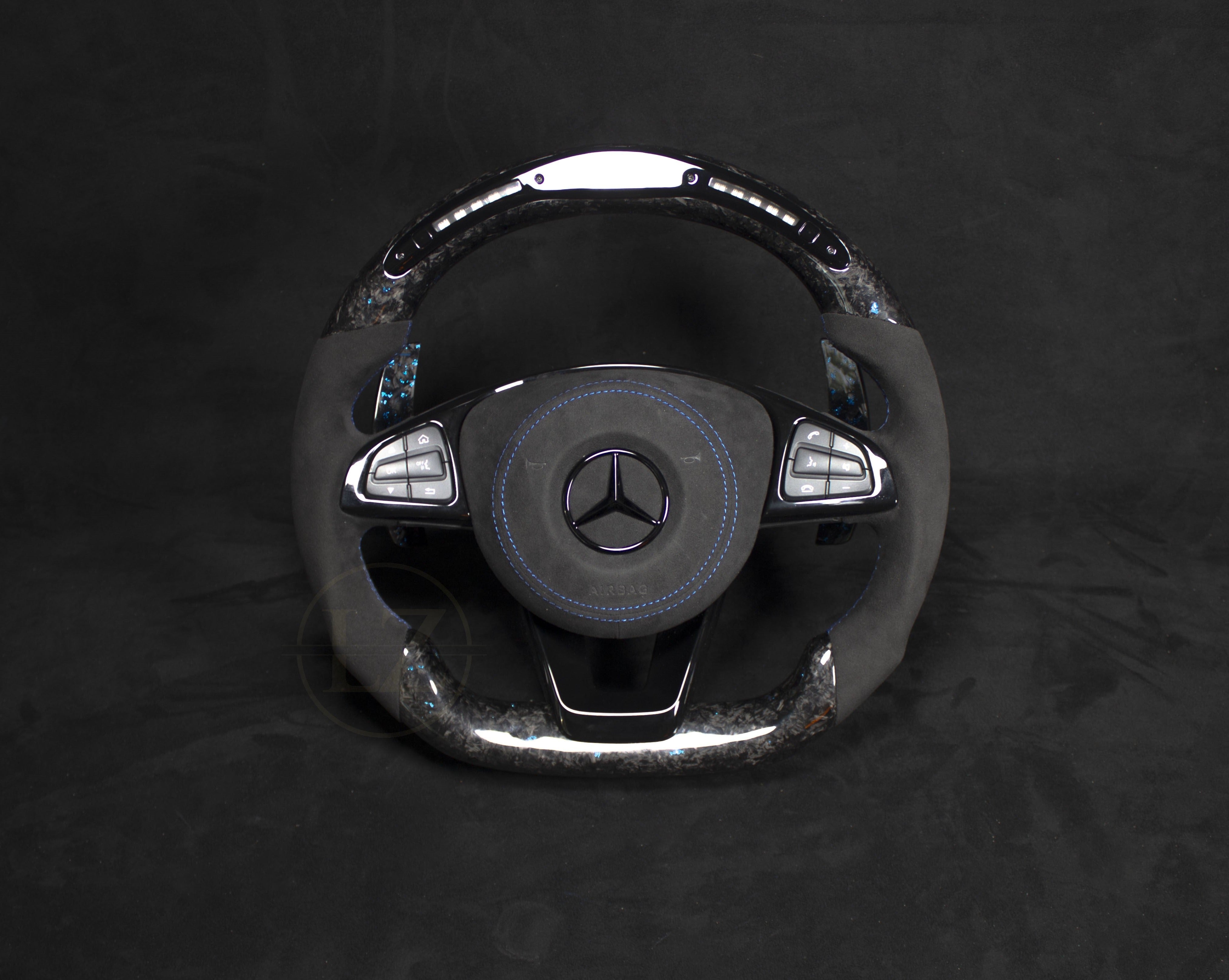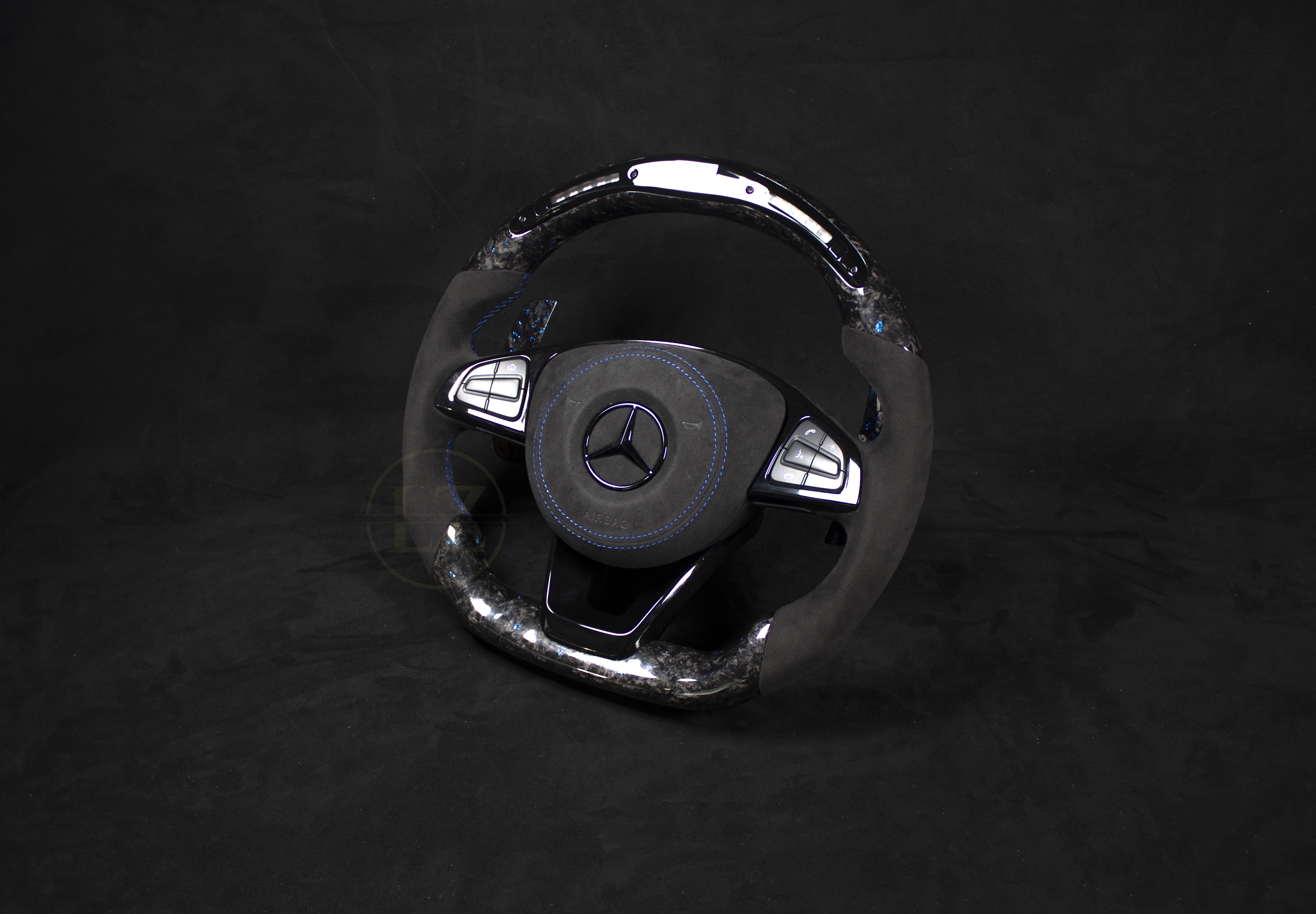 Oppdag det unike Mercedes-Benz Forged Carbon/Alcantara LED Ratt Blå Flakes, en håndlaget skatter som passer perfekt til C-klasse og flere andre MB-modeller. Dette rattet er ikke bare et tilbehør, men en oppgradering som kombinerer stil og funksjonalitet.