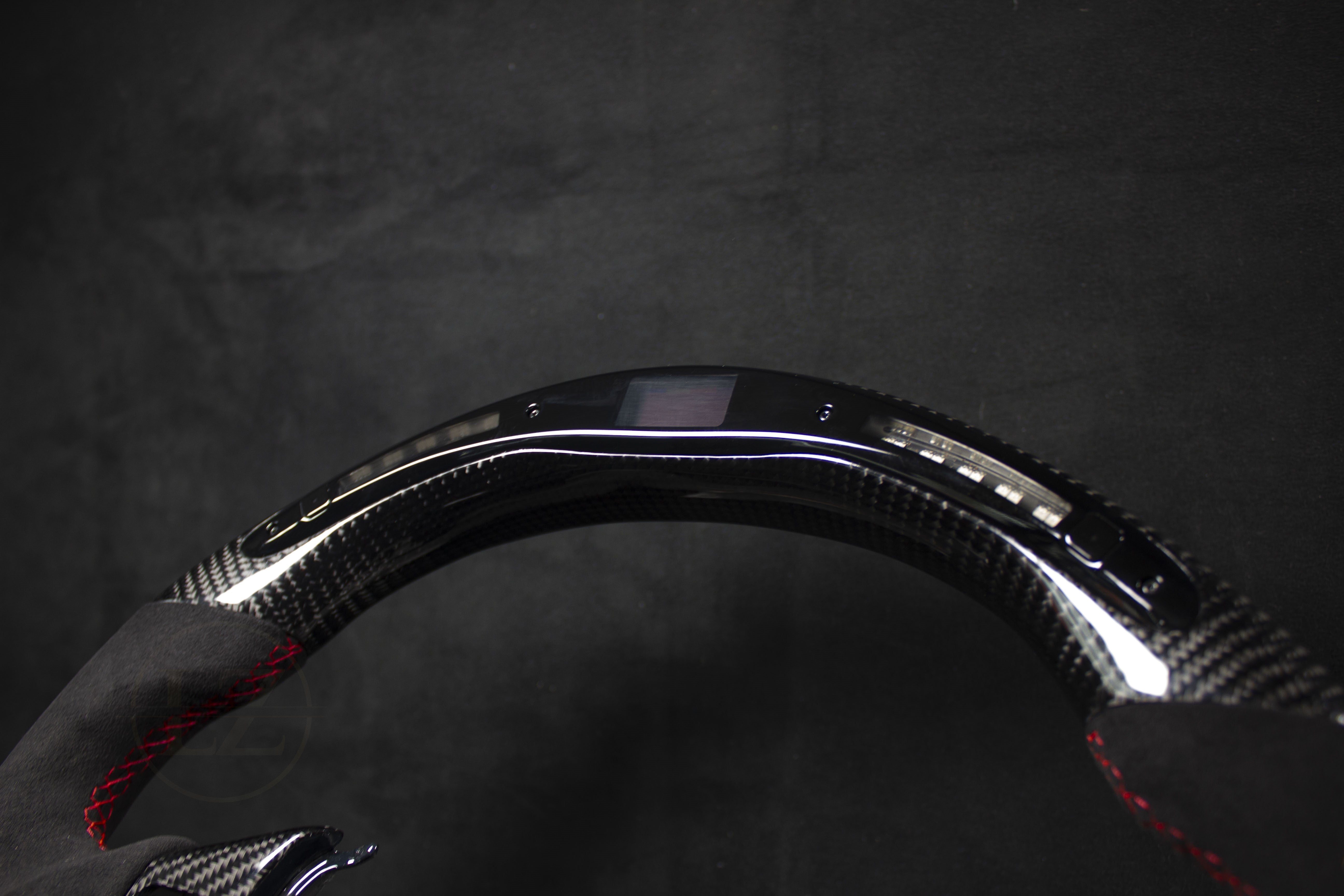 Spesifikasjoner som karbon topp og bunn, Alcantara sider, og LED-belysning gir rattet en moderne og sporty stil. Bestill i dag og opplev forskjellen!