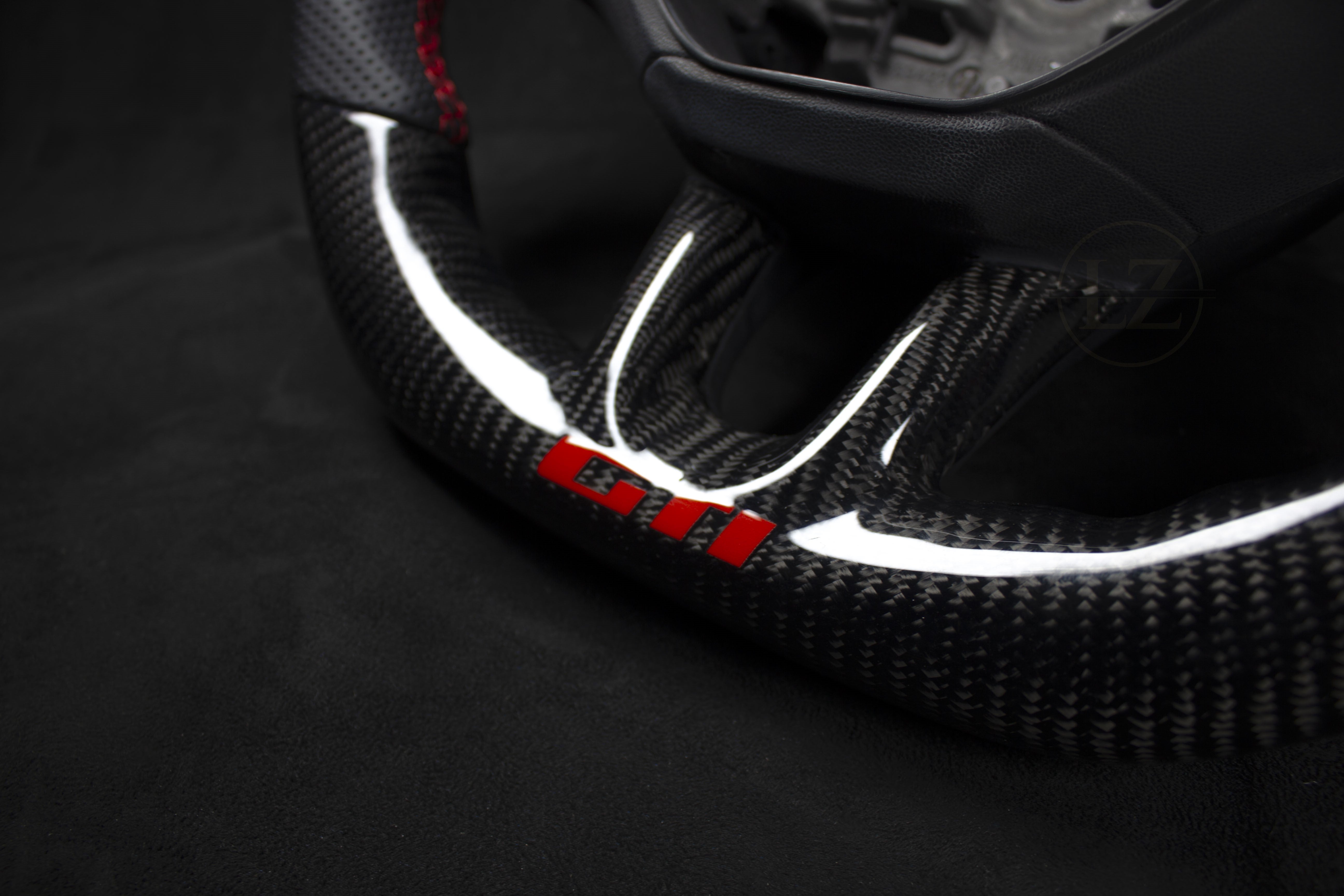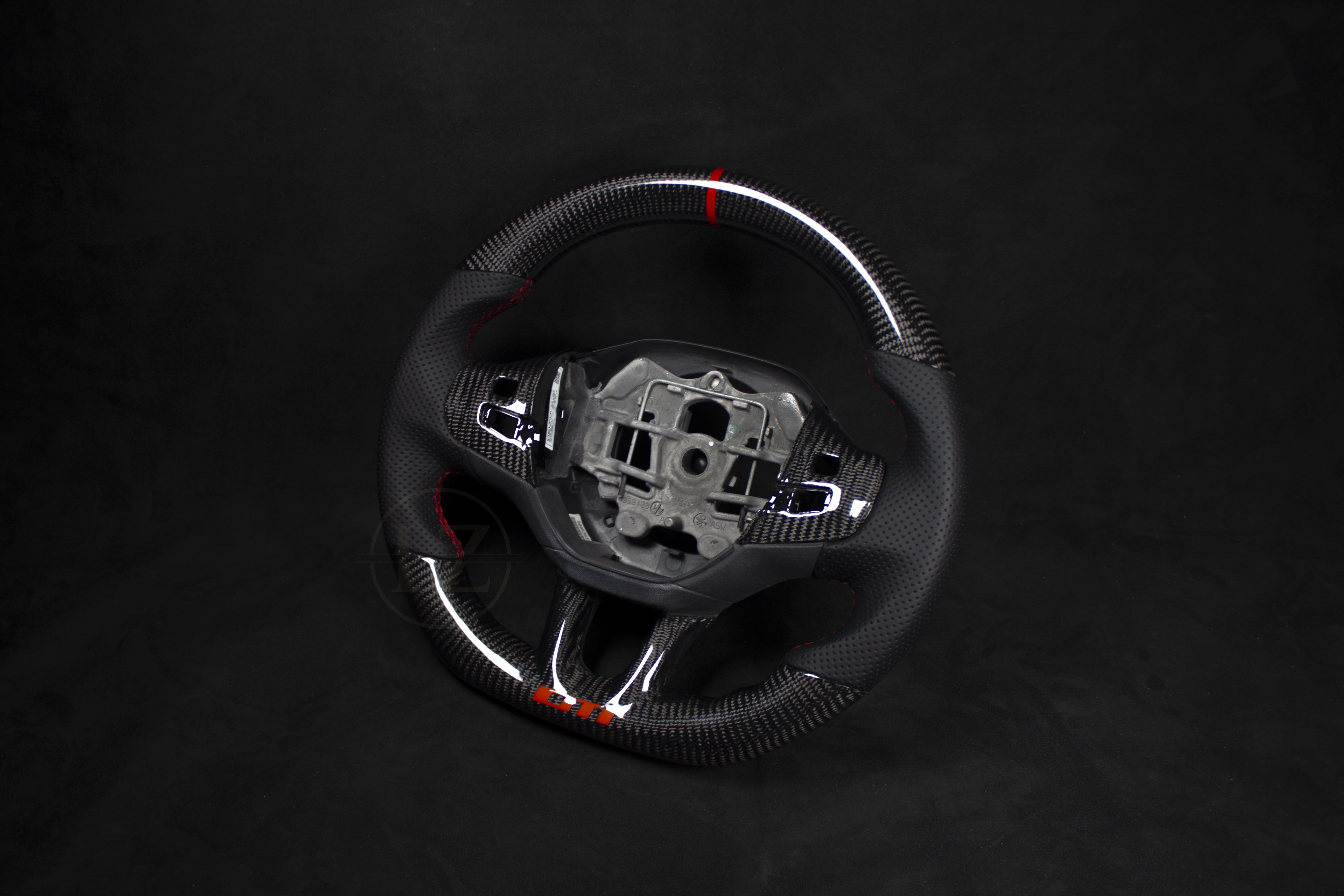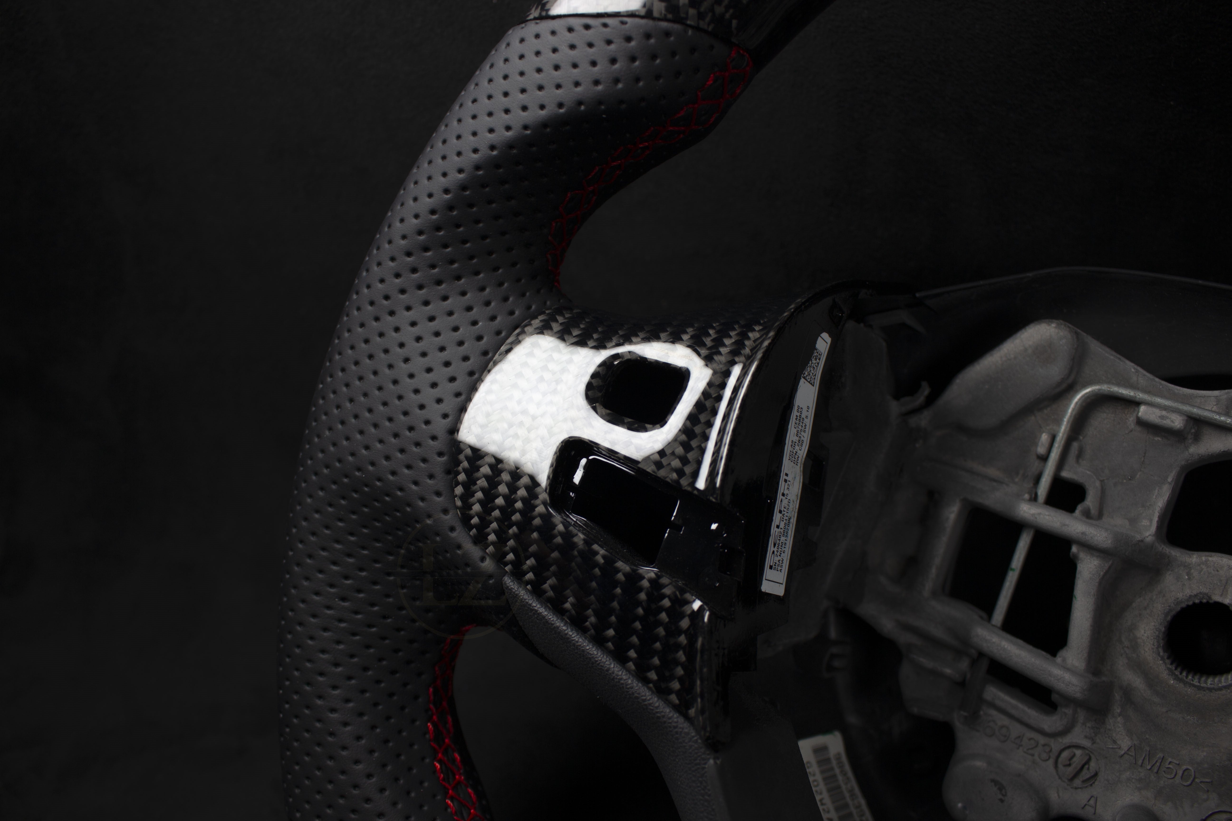 Med ekte Alcantara og Nappa skinn fra Italia, samt karbon fra Japan, tilbyr dette rattet enestående kvalitet. Velg mellom ventilert skinn, karbon topp og bunn, samt tilpassede farger for sømmer og stripe.